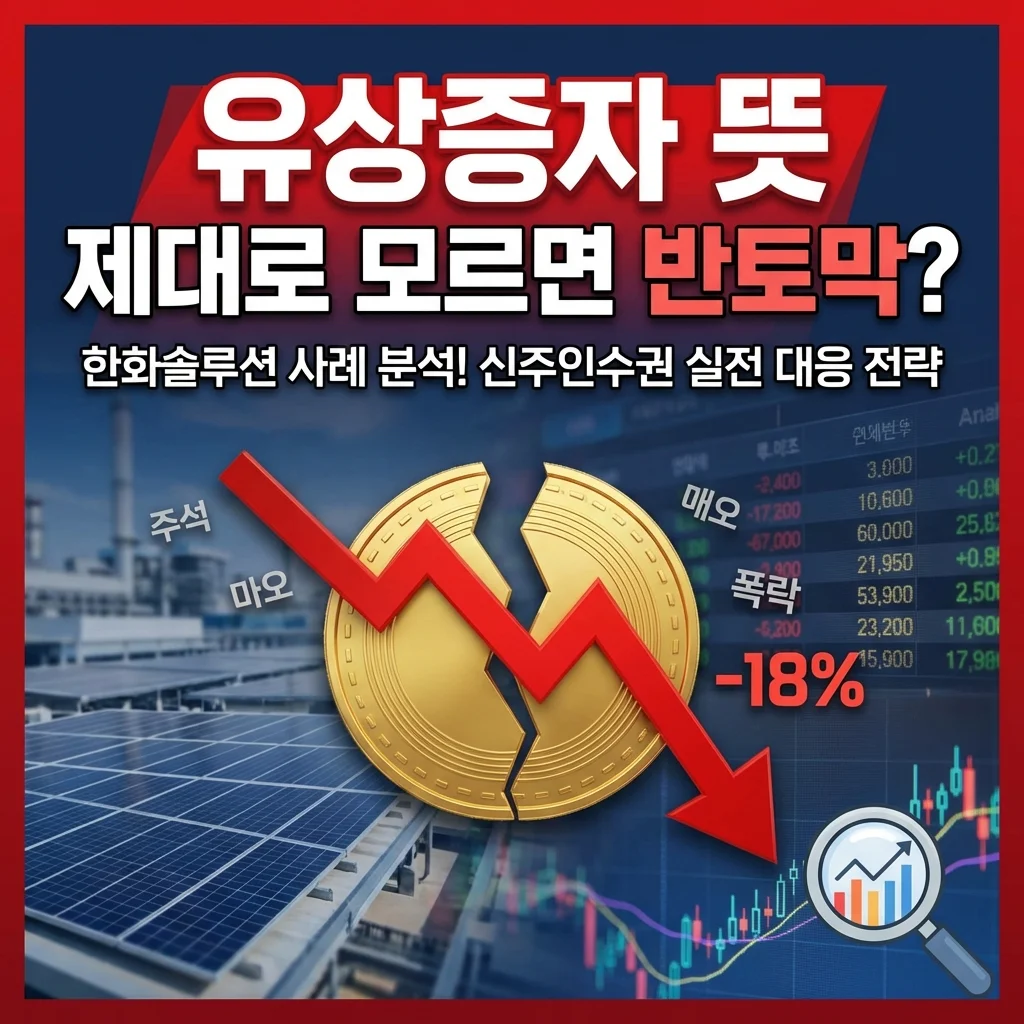 갑작스러운 유상증자 공시 후 계좌가 녹아내리는 경험을 하고 계신가요? 단순한 자본 확충인지 빚 탕감인지 구분하지 못하면 큰 손실을 입게 됩니다. 이 글을 통해 한화솔루션 폭락 사례와 주석 신조어의 실체를 분석하고, 신주인수권을 활용해 내 소중한 자산을 지키는 구체적인 실전 대응 전략을 완벽히 마스터할 수 있습니다.
