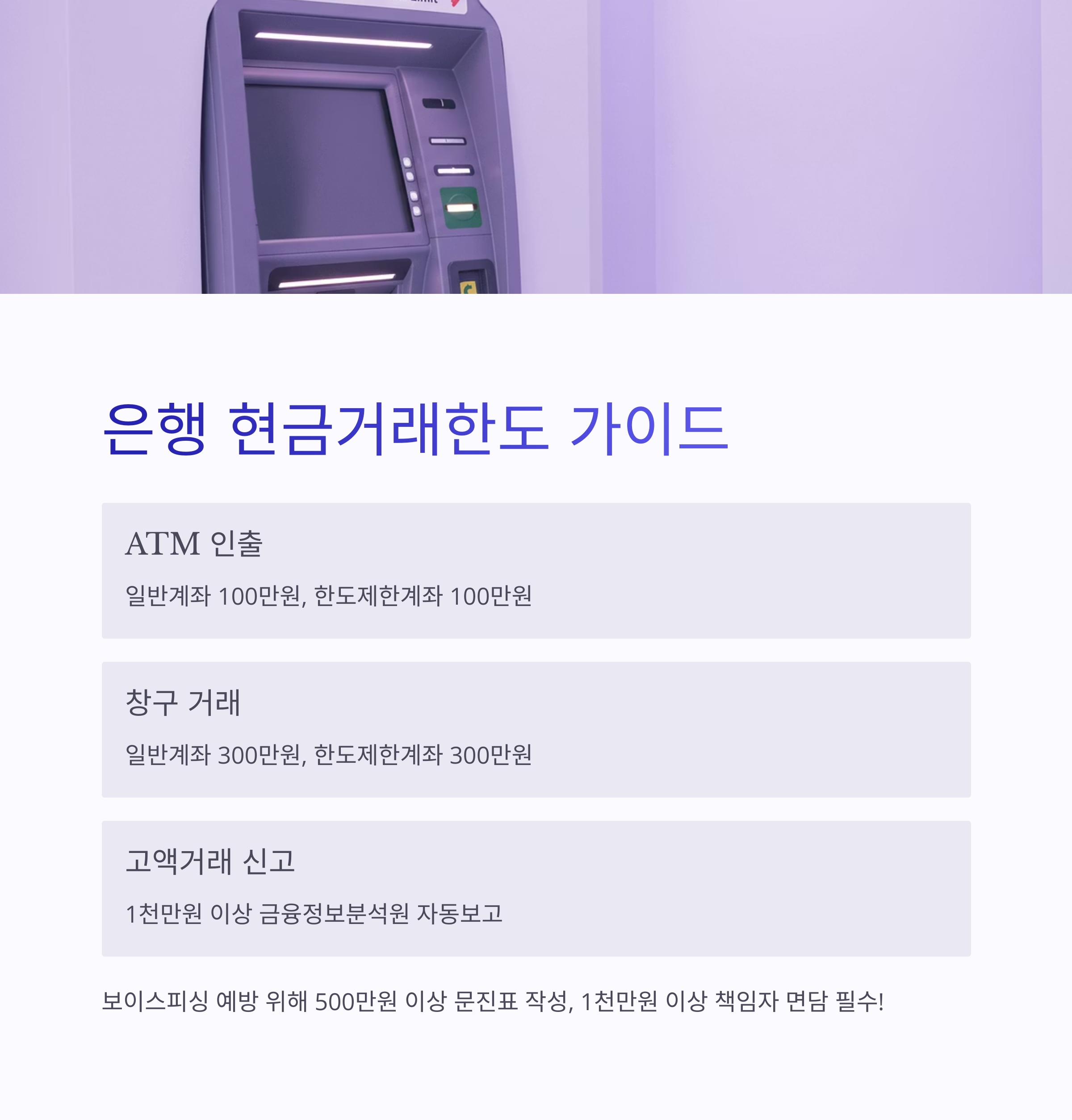 ✅ 2025년 ATM·창구별 일일 현금거래한도와 변경사항