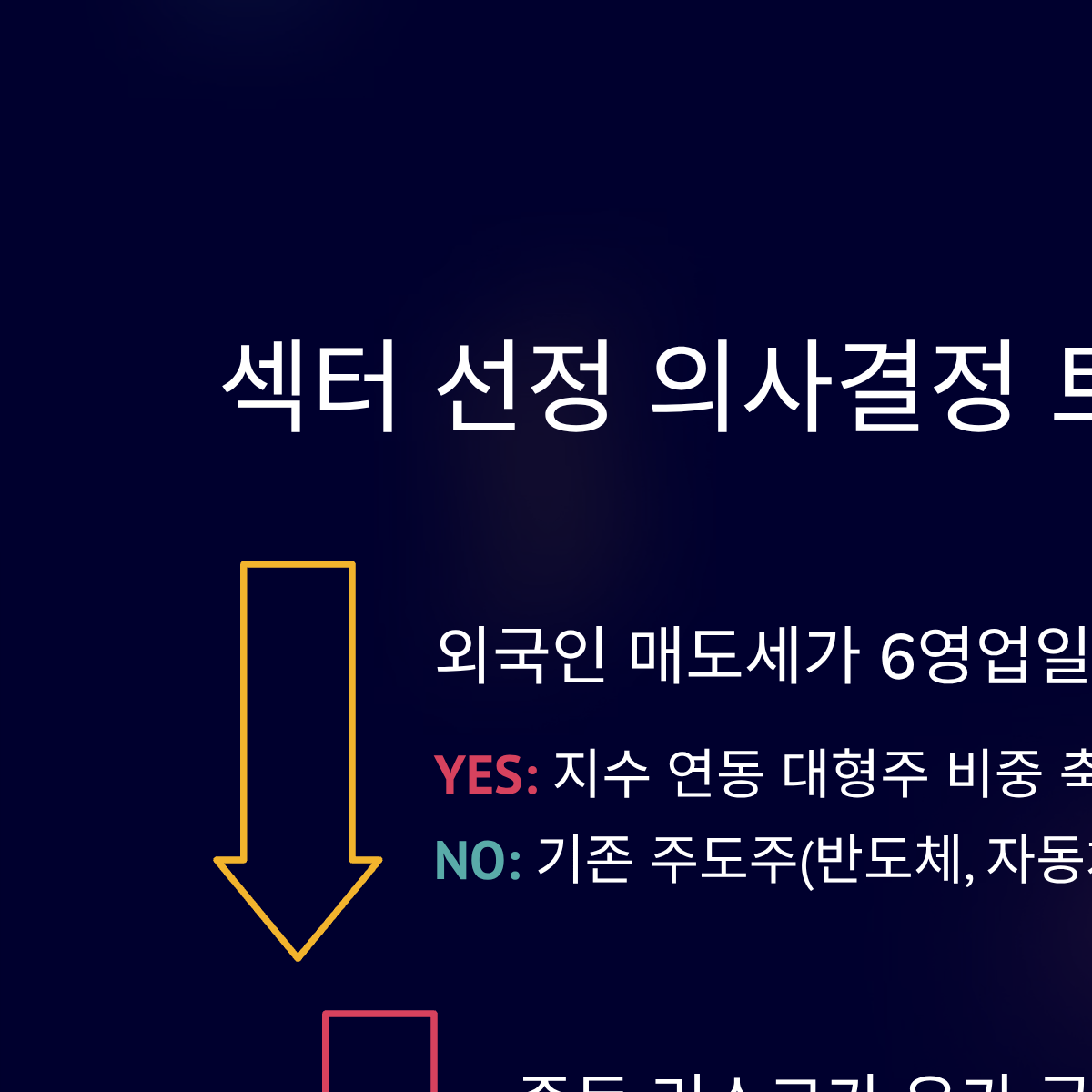 아래 의사결정 트리를 통해 현재 수급 상황에서 어떤 섹터에 진입해야 할지 판단해 보시기 바랍니다.