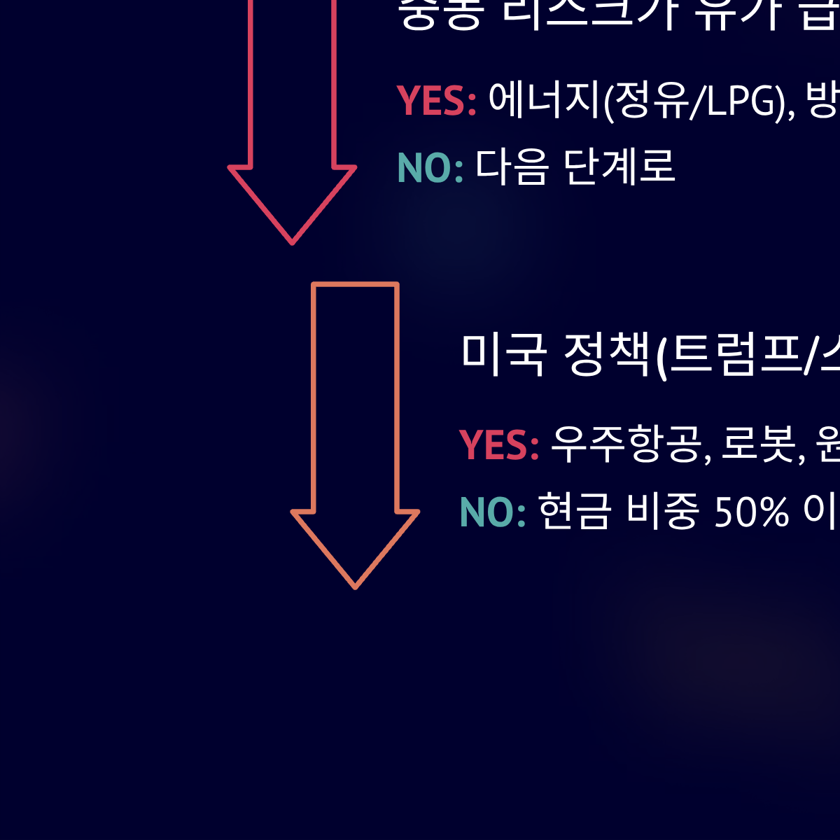 - YES → 방산 및 안전자산(금, 달러) 비중 확대