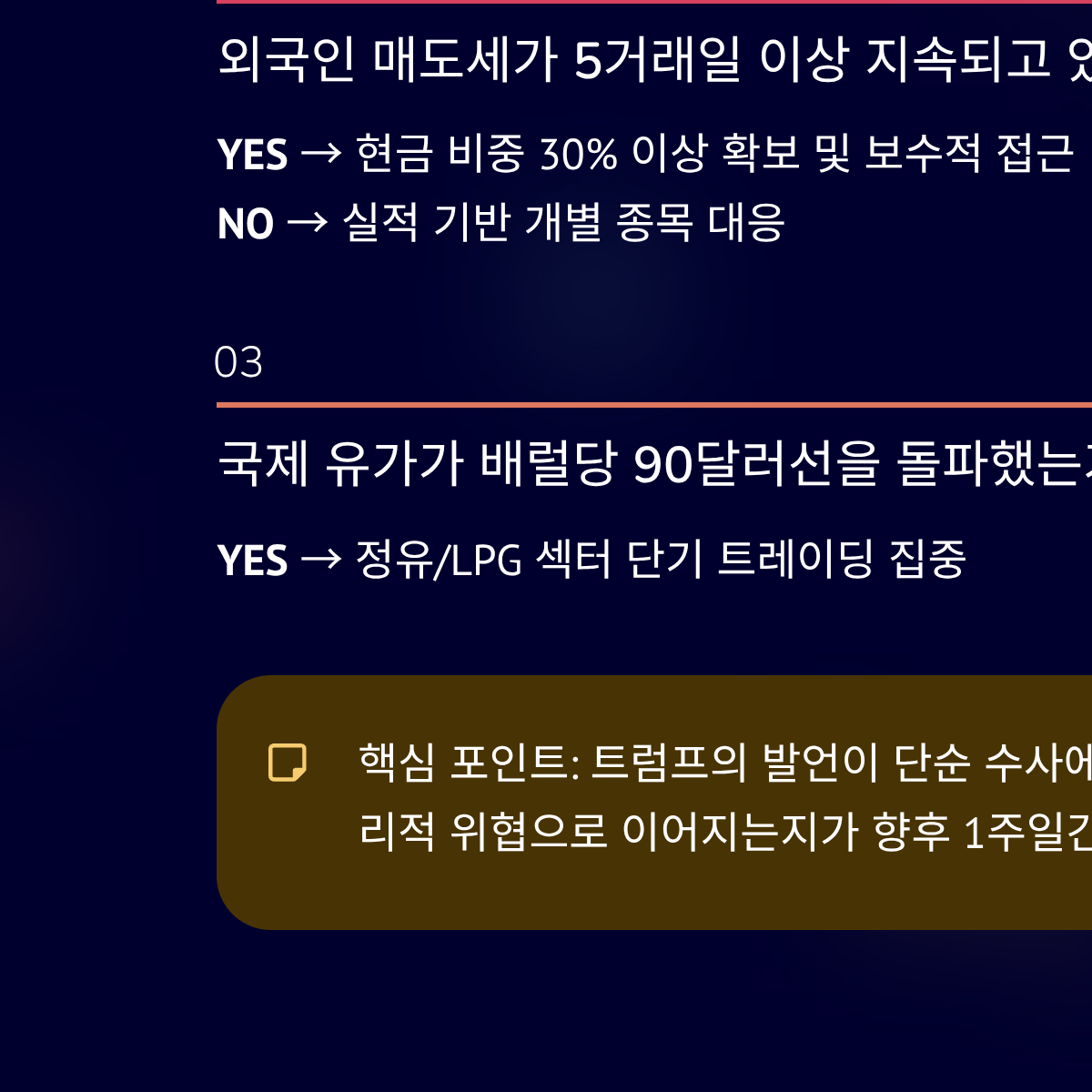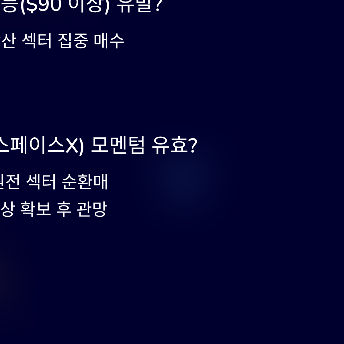 - NO → 실적 기반의 개별 종목(반도체, 조선) 장세 대응 - 국제 유가가 배럴당 90달러선을 돌파했는가?