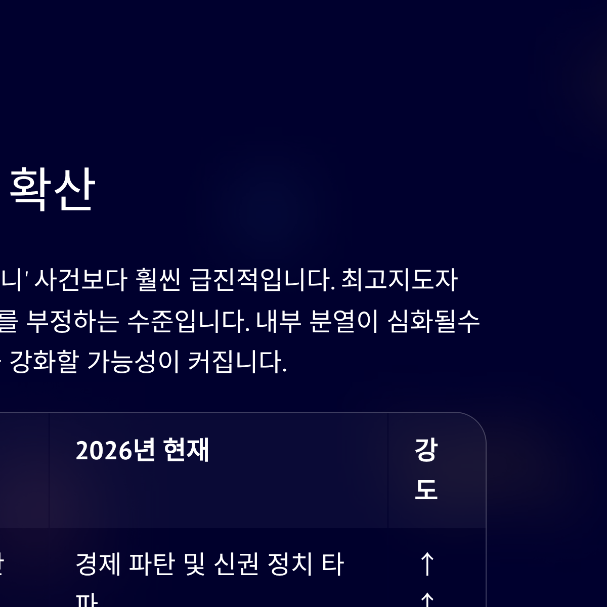 이 표를 통해 현재 시위가 단순한 사회 운동을 넘어 정권의 존립을 위협하는 수준에 도달했음을 알 수 있습니다.