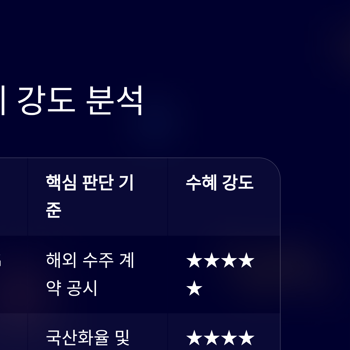 | 구분 | 주요 관련주 유형 | 핵심 판단 기준 (Key Indicator) | 수혜 강도 | 한눈에 보는 결론 |