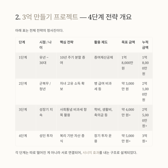 3. 3억 만들기 프로젝트 — 4단계 전략 개요