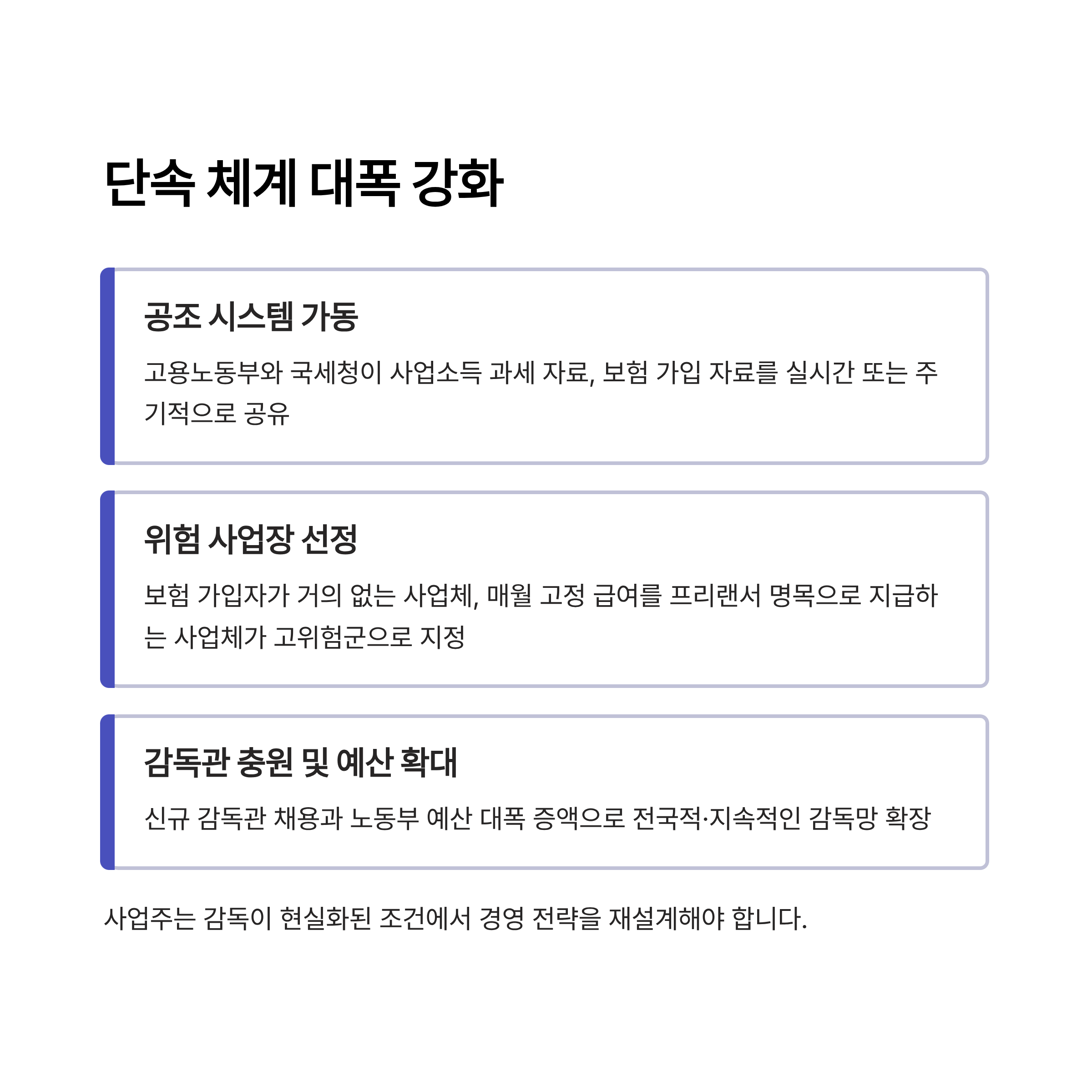 - 단속 체계 강화: 노동부·국세청 협업과 감독 강화