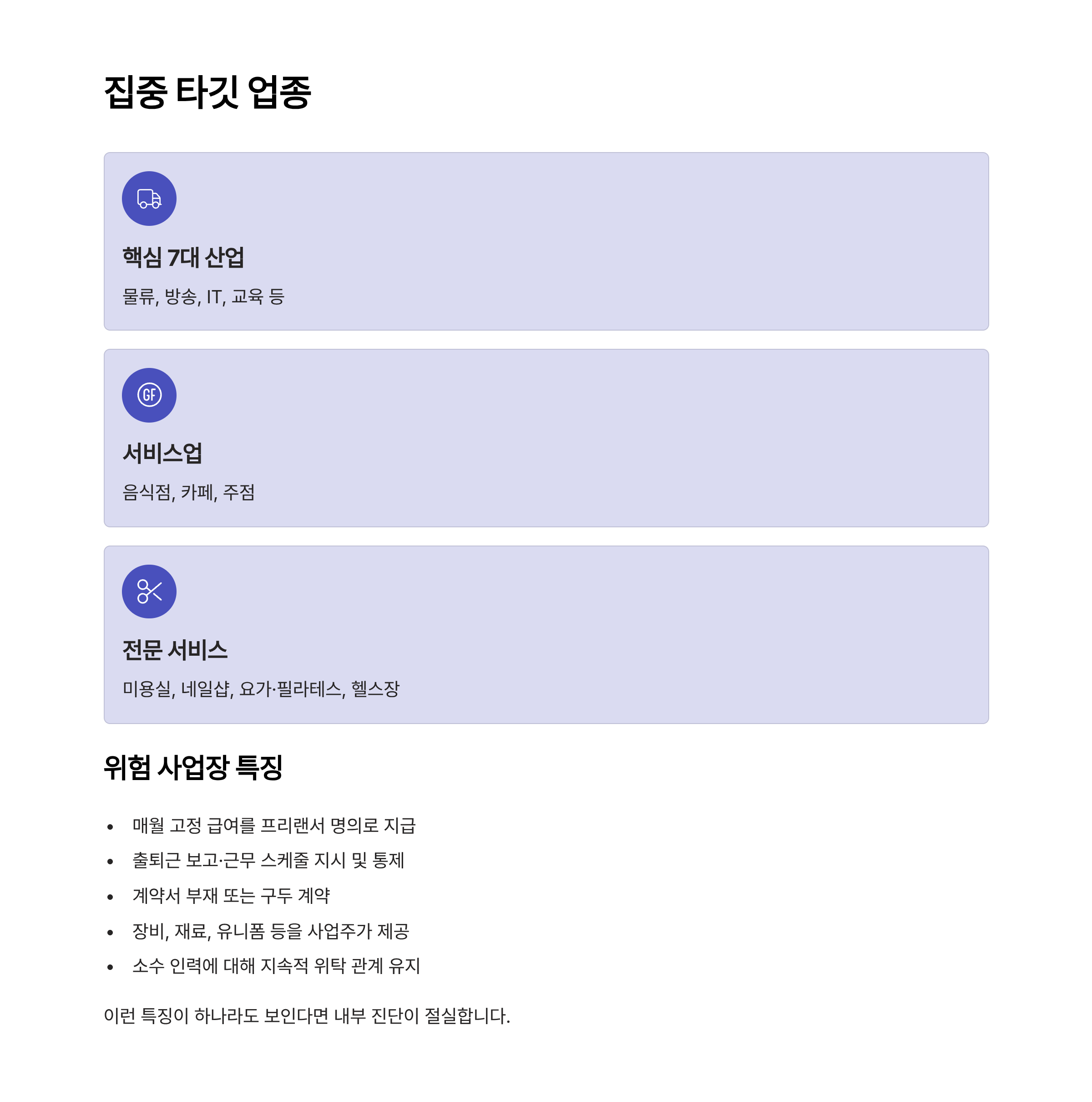 - 집중 타깃 업종 및 특징