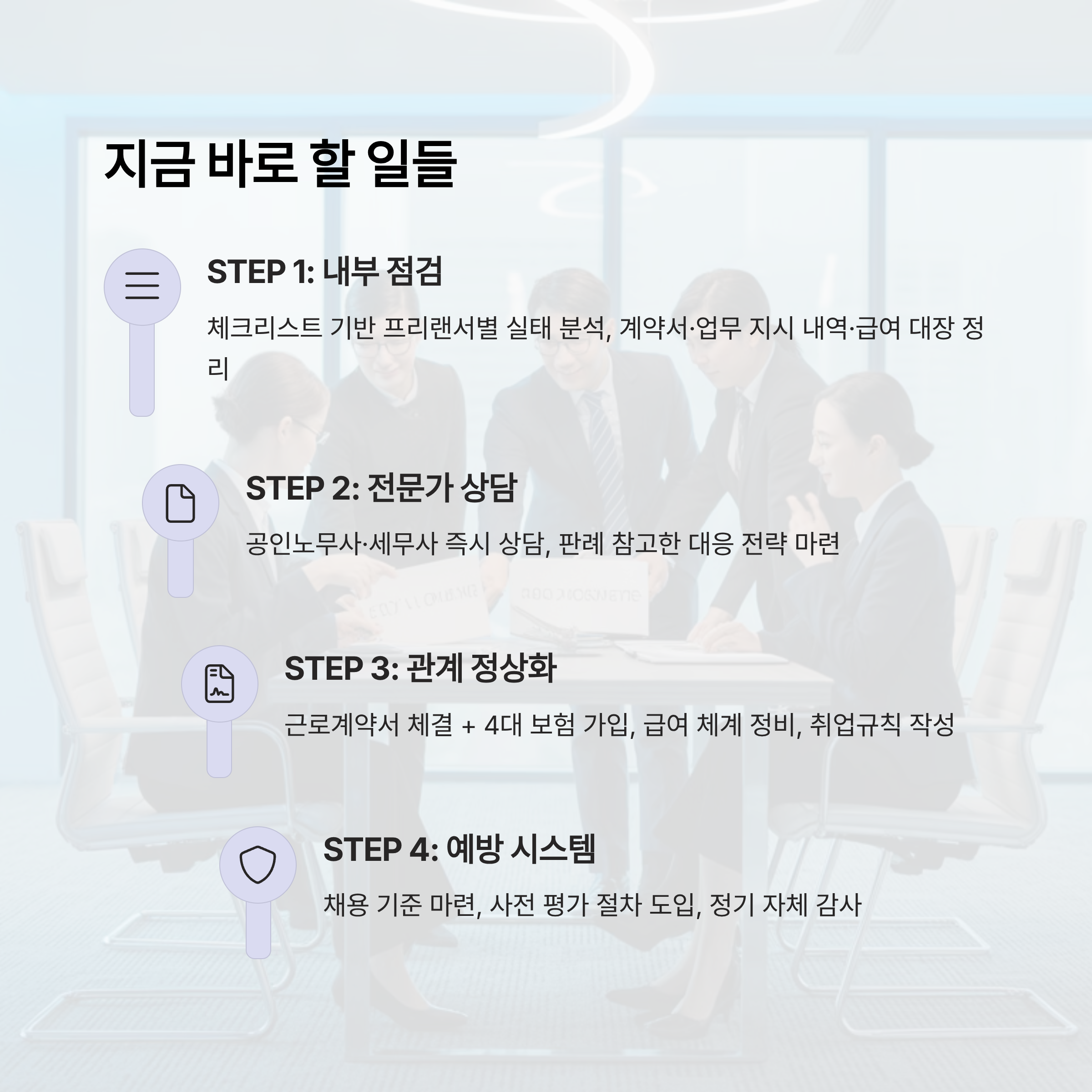 - 공인노무사 및 세무사와 즉시 상담하여 리스크 진단