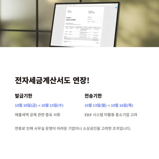세무 일정에서 중요한 항목 중 하나인 전자세금계산서의 발급과 전송 기한도 이번 연휴를 고려해 연장됩니다.