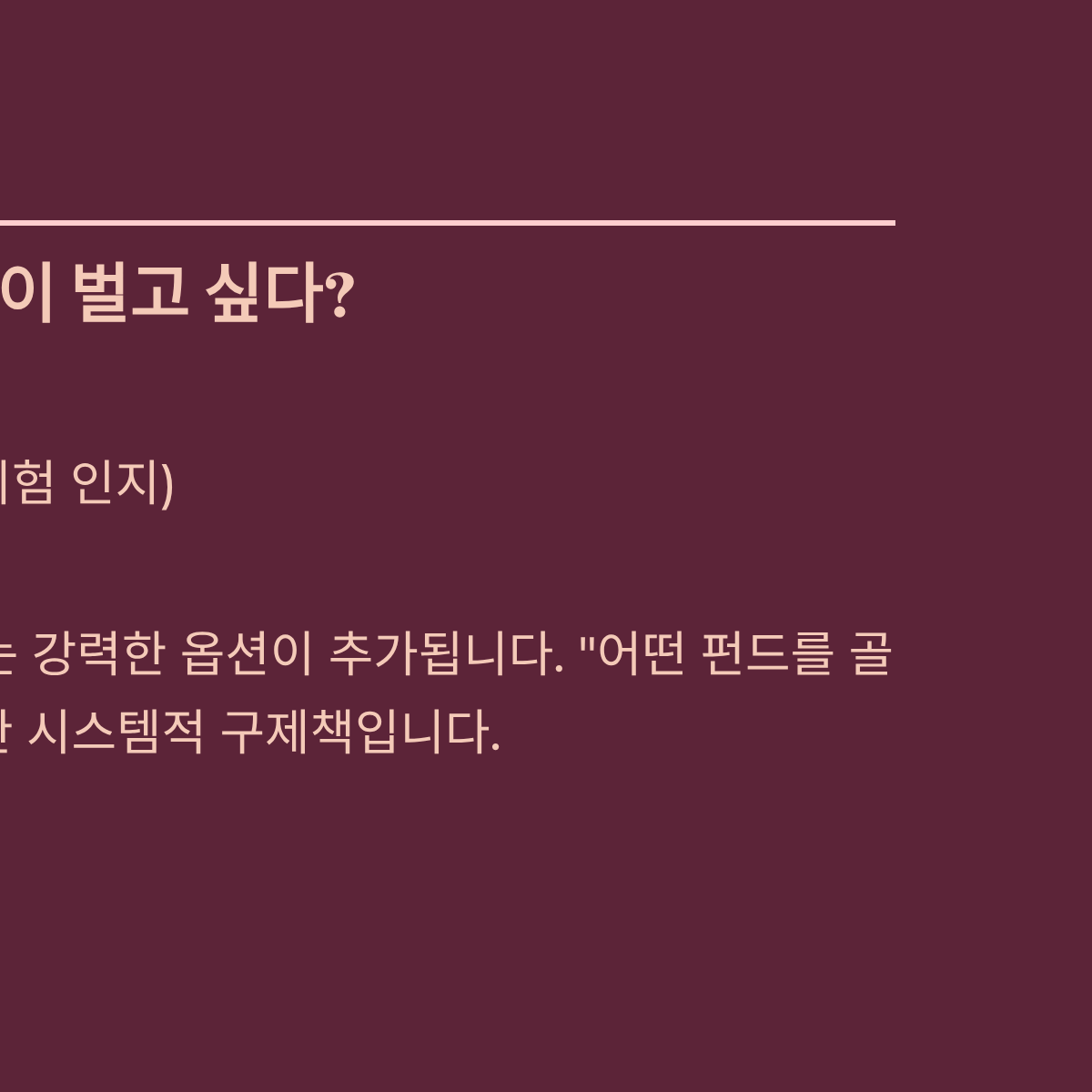 1. 금융 지식이 풍부하고 연 5% 이상의 변동성을 감당할 수 있는가? → 직접 운용 유지