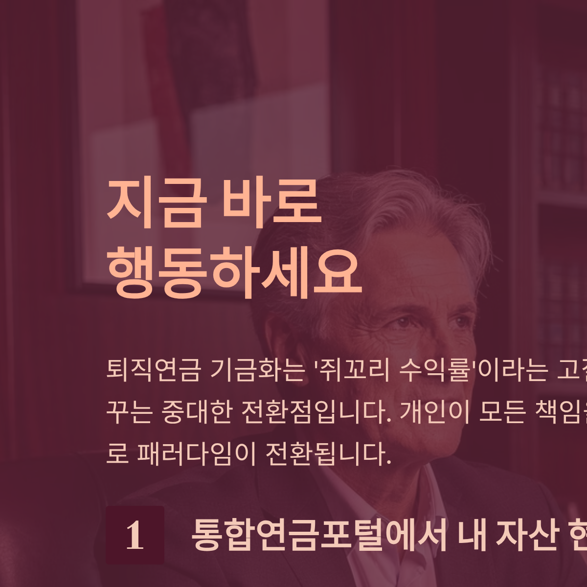 퇴직연금 기금화는 단순한 제도 변화를 넘어, '쥐꼬리 수익률'이라는 고질적인 문제를 해결하고 노후 자산의 질을 바꾸는 중대한 전환점입니다. 개인이 모든 책임을 지던 방식에서 전문가 집단의 통합 운용으로 패러다임이 전환됨에 따라, 이제는 내 자산이 어디서 어떻게 관리되는지 정확히 파악하는 것이 필수적인 생존 전략이 되었습니다.
