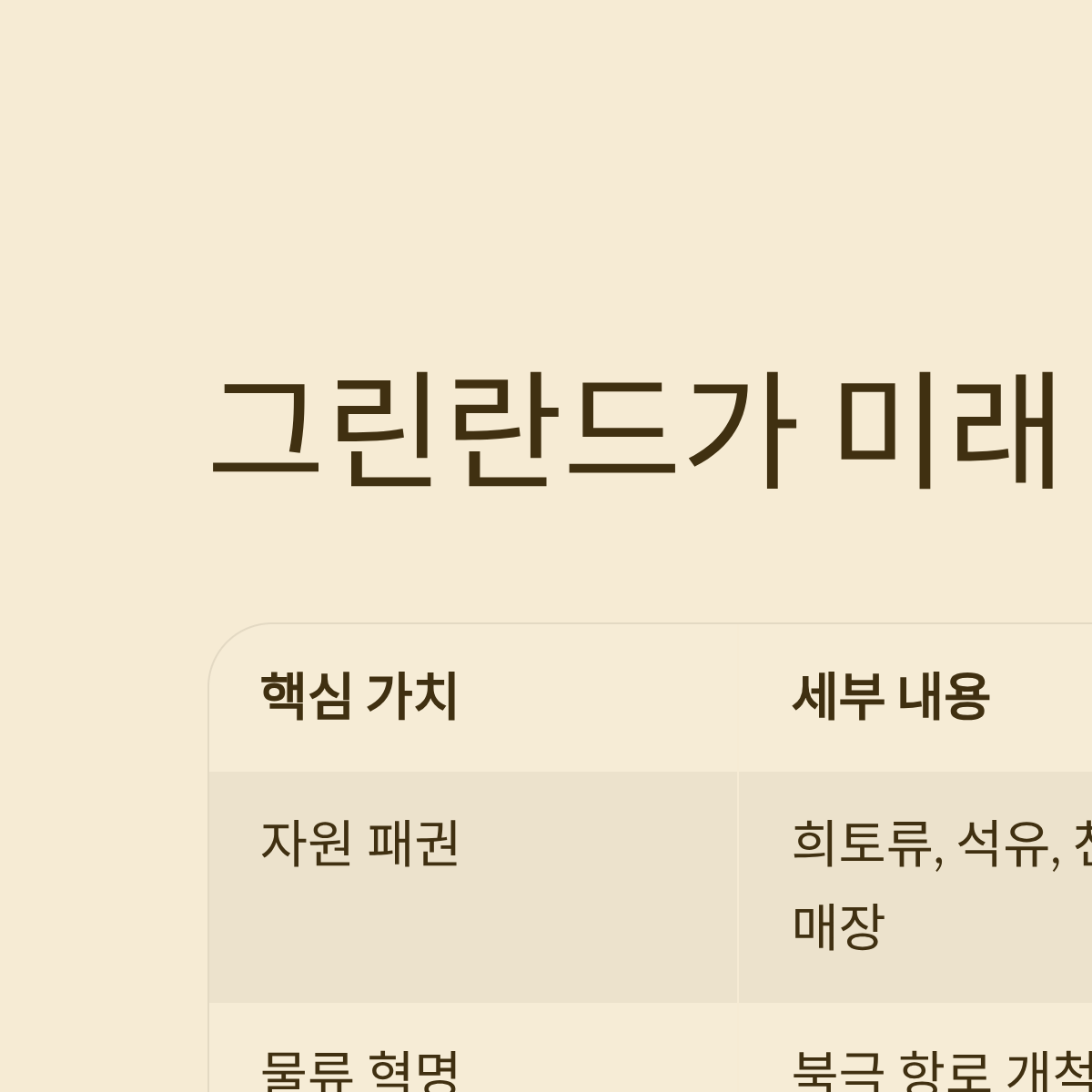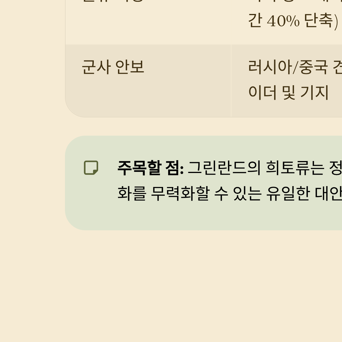 이 표를 보면 그린란드가 단순한 섬이 아니라 미국의 미래 경제 및 안보를 결정지을 '게임 체인저'임을 알 수 있습니다.