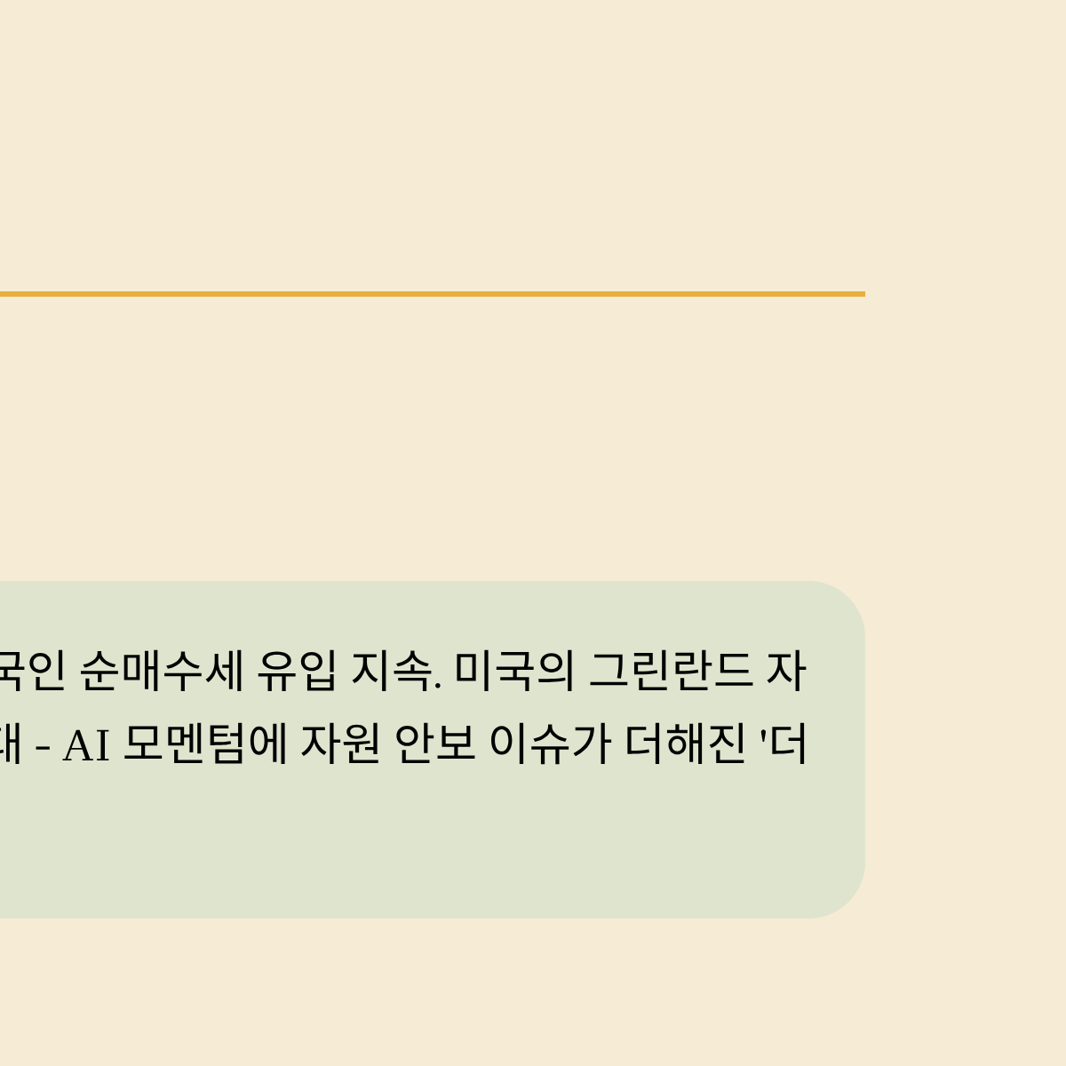 * 그린란드 위치의 전략적 가치가 부각될수록 방산주보다는 자원주에 자금이 집중되는 경향이 있습니다.