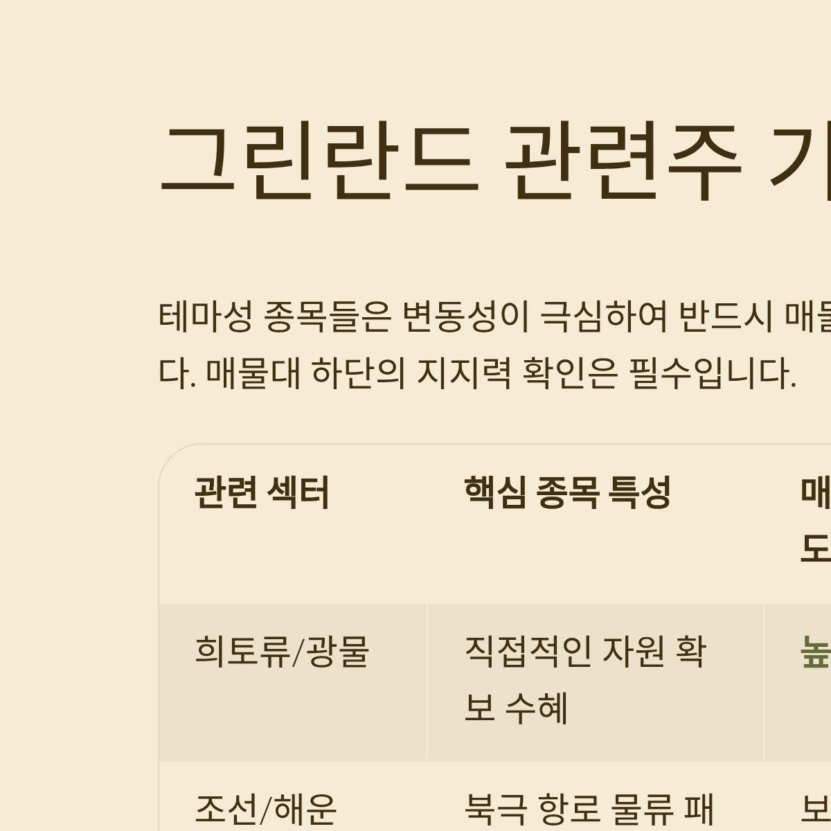 그린란드 테마주 진입 전 체크리스트