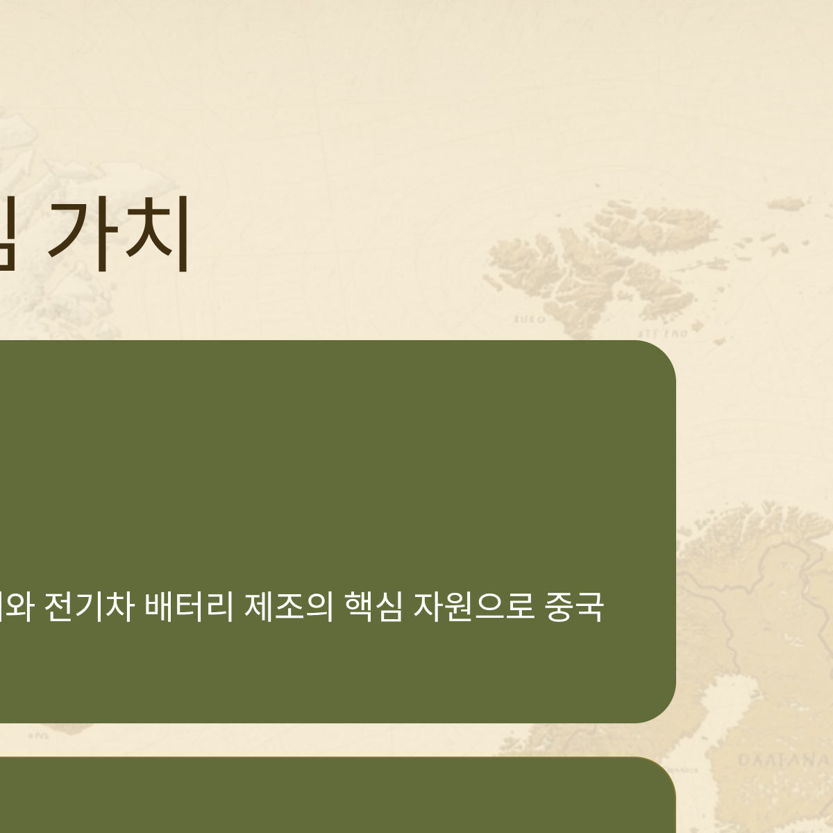 | 자원 패권 | 희토류, 석유, 천연가스 매장 | 중국 의존도 탈피를 위한 필수 자원 기지 |