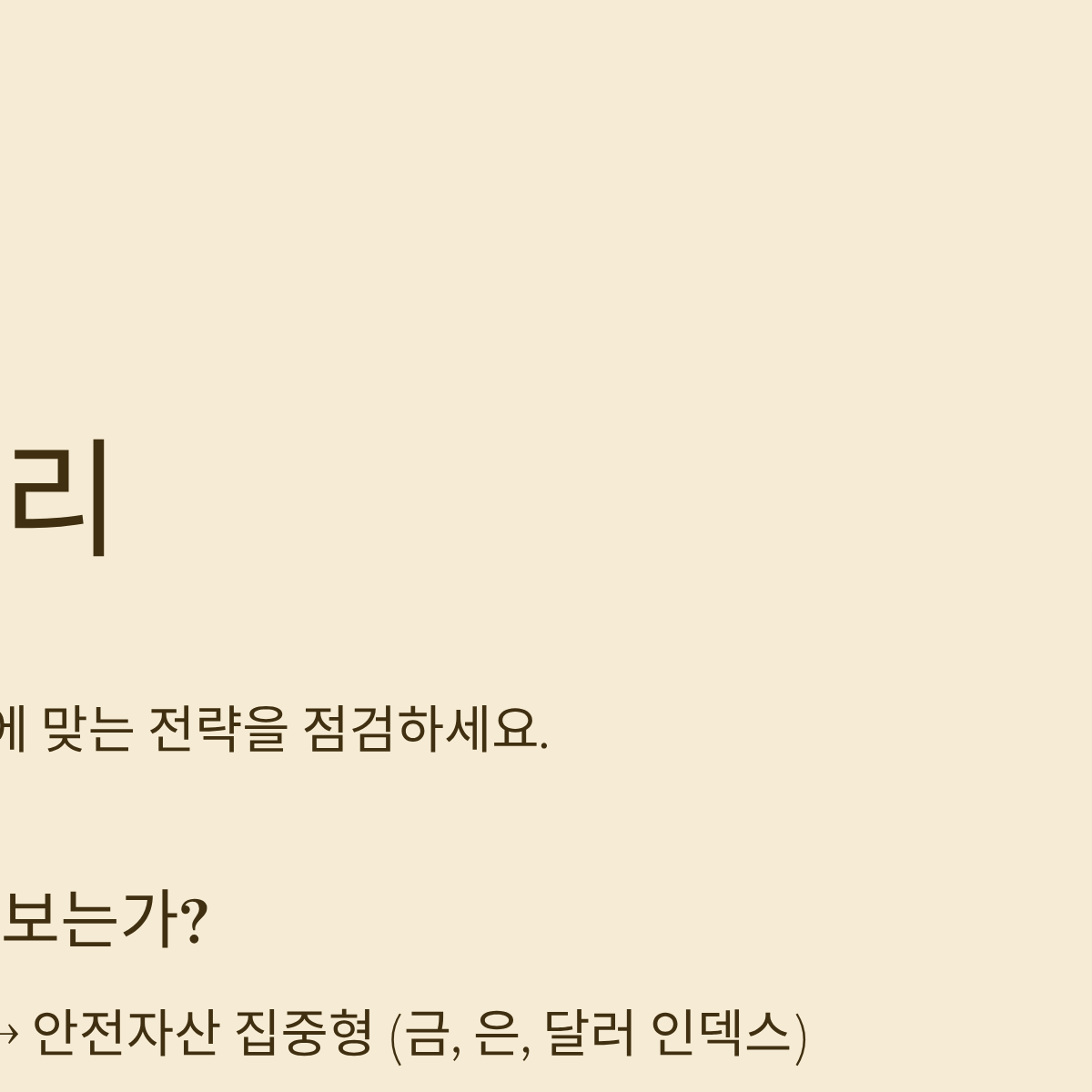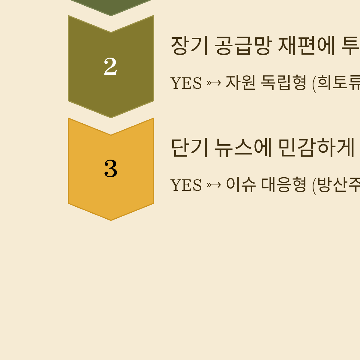 - NO → 안전자산 집중형 (금, 은, 달러 인덱스 관련주 매수)