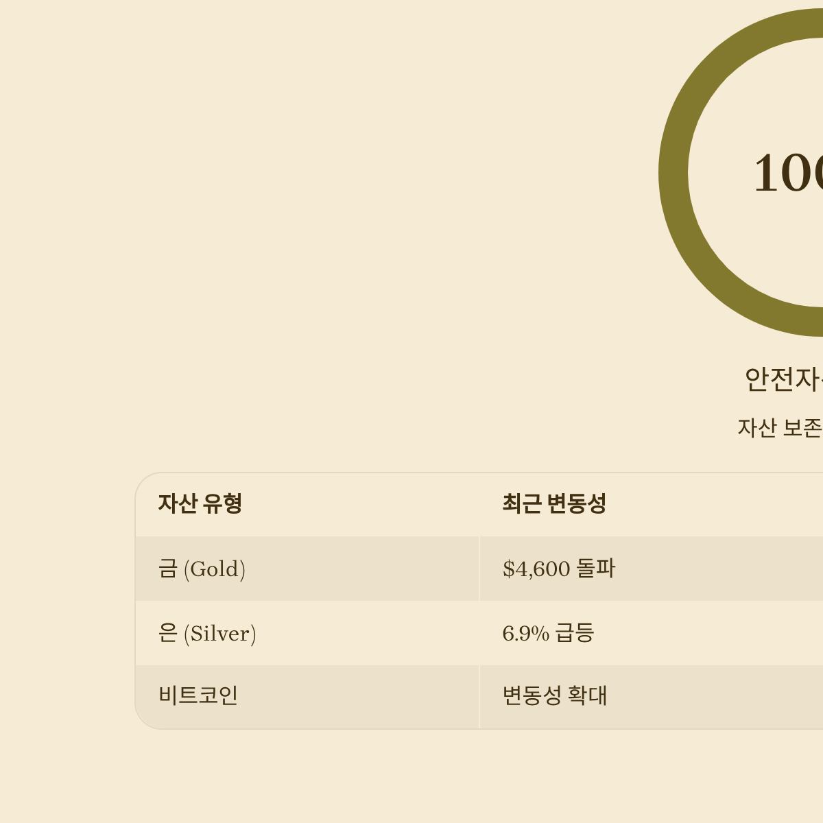 | 자산 유형 | 최근 변동성 (최고가 기준) | 핵심 판단 기준 | 한눈에 보는 결론 |