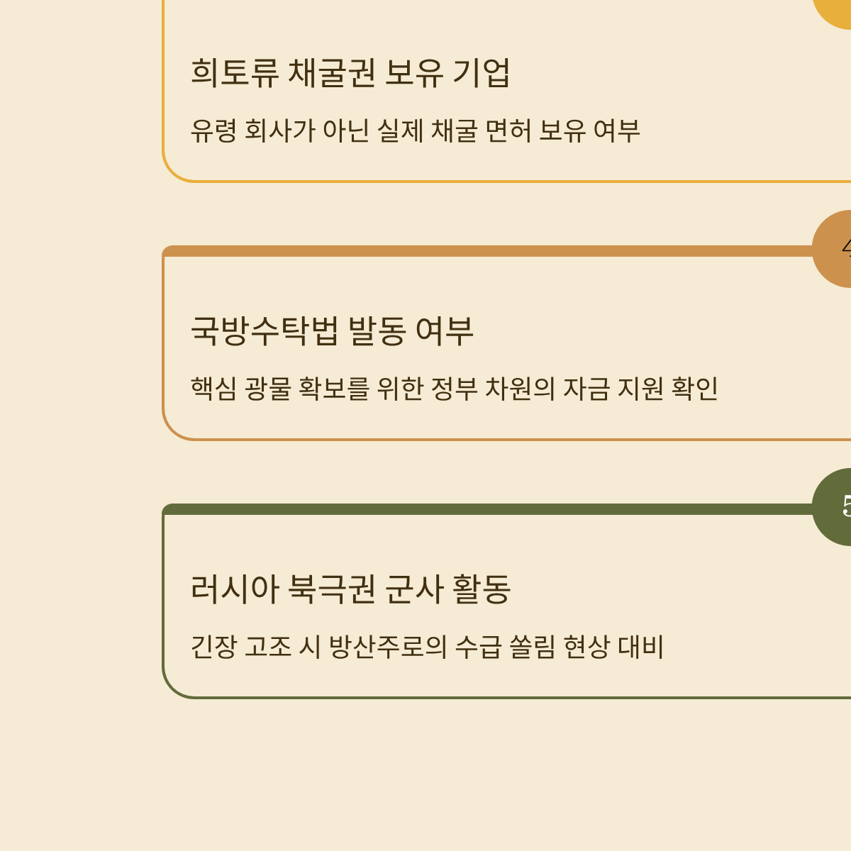 * [ ] 희토류 채굴권 보유 기업의 실체: 유령 회사가 아닌 실제 채굴 면허(License) 보유 여부
