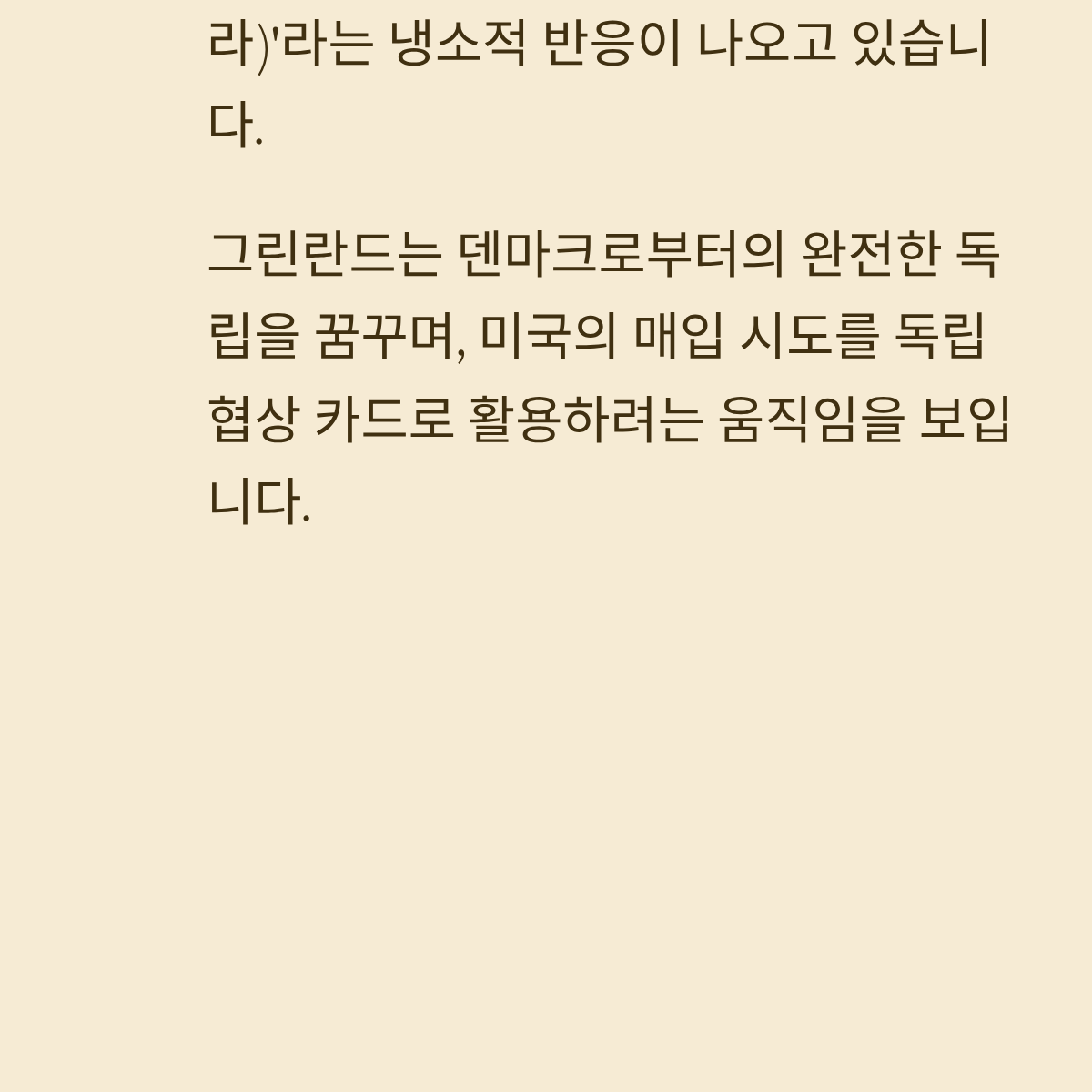 * [ ] 덴마크 정부의 공식 입장 변화: 단순 반대를 넘어 경제 협력 조건 제시 여부 확인
