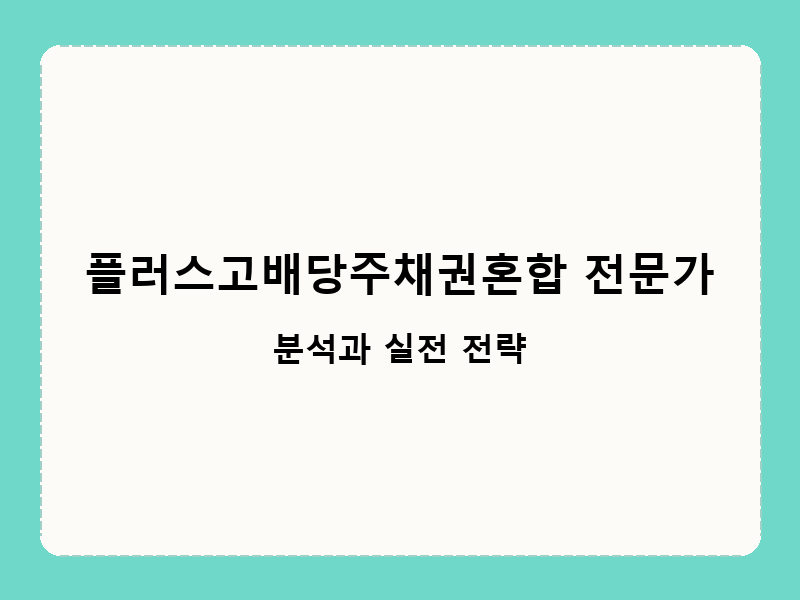 안녕하세요, 플러스고배당주채권혼합에 대한 깊은 통찰과 유익한 정보가 가득한 이번 콘텐츠를 통해 투자에 도움이 될 것입니다. 함께 알아보도록 하죠!