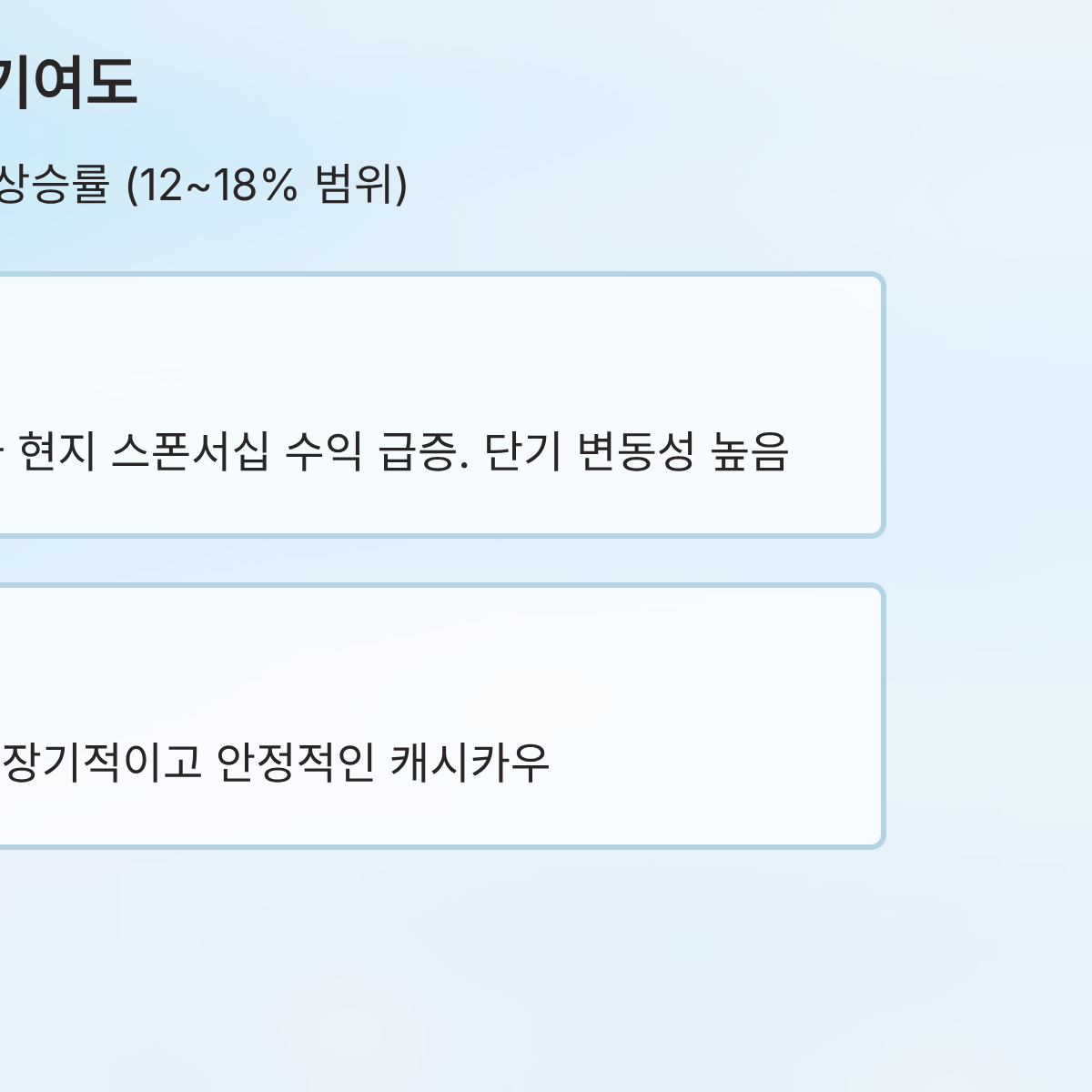 | 수익 구조 | 티켓 매출 + 현지 스폰서십 | IP(Intellectual Property) 로열티 | 영업이익률(OPM) 개선 폭 |