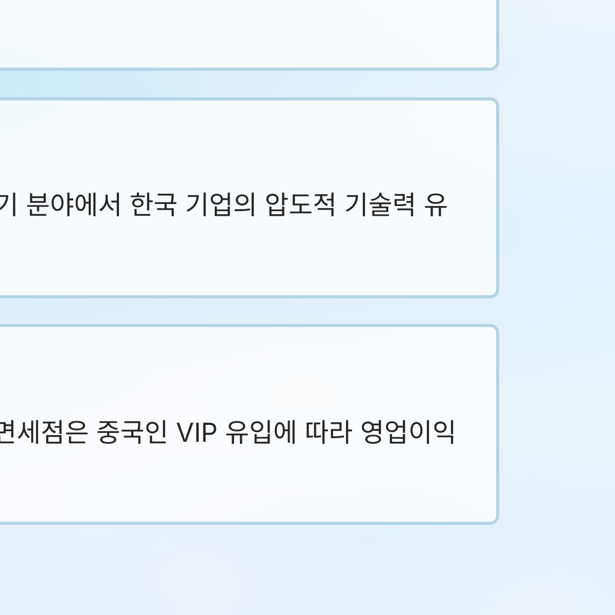 | 관광/유통 | 면세점 매출 급감 및 보따리상 위주 | 개별 관광객(FIT) 증가 및 단체 관광 재개 | 인당 소비 지출액 및 방문객 수 |