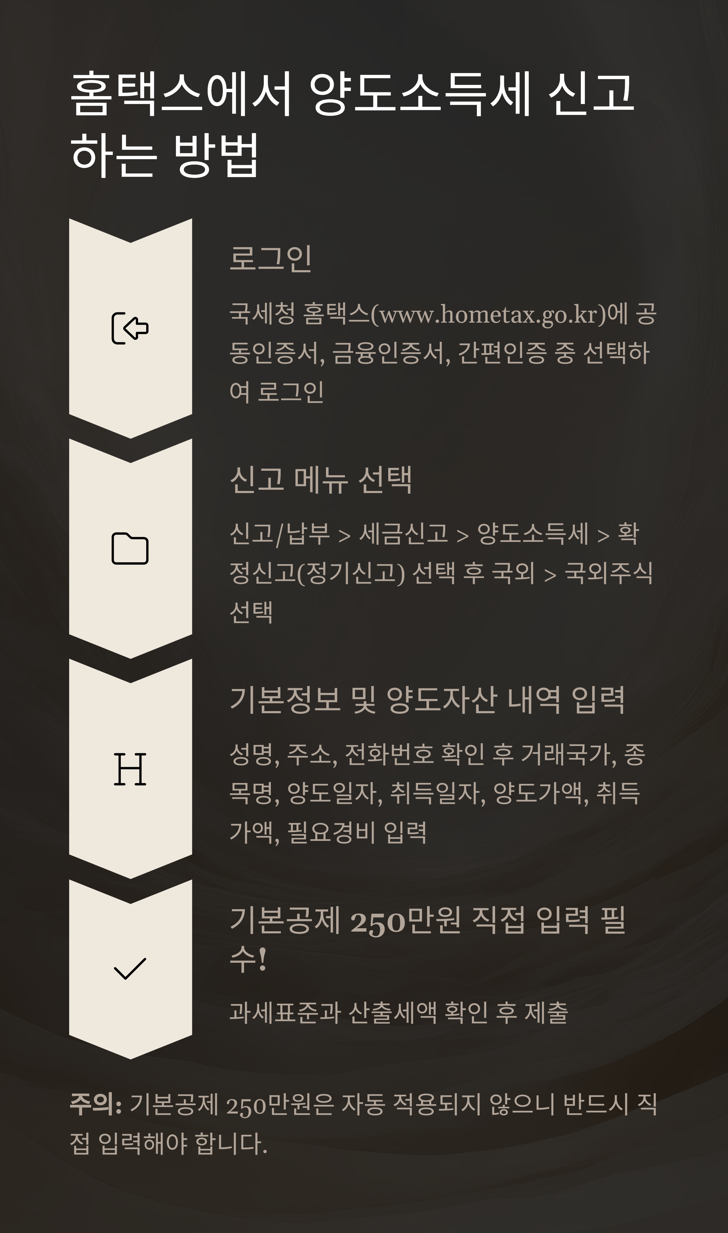 해외주식 양도소득세를 처음 신고하는 분들을 위한 구체적인 단계별 가이드입니다:
