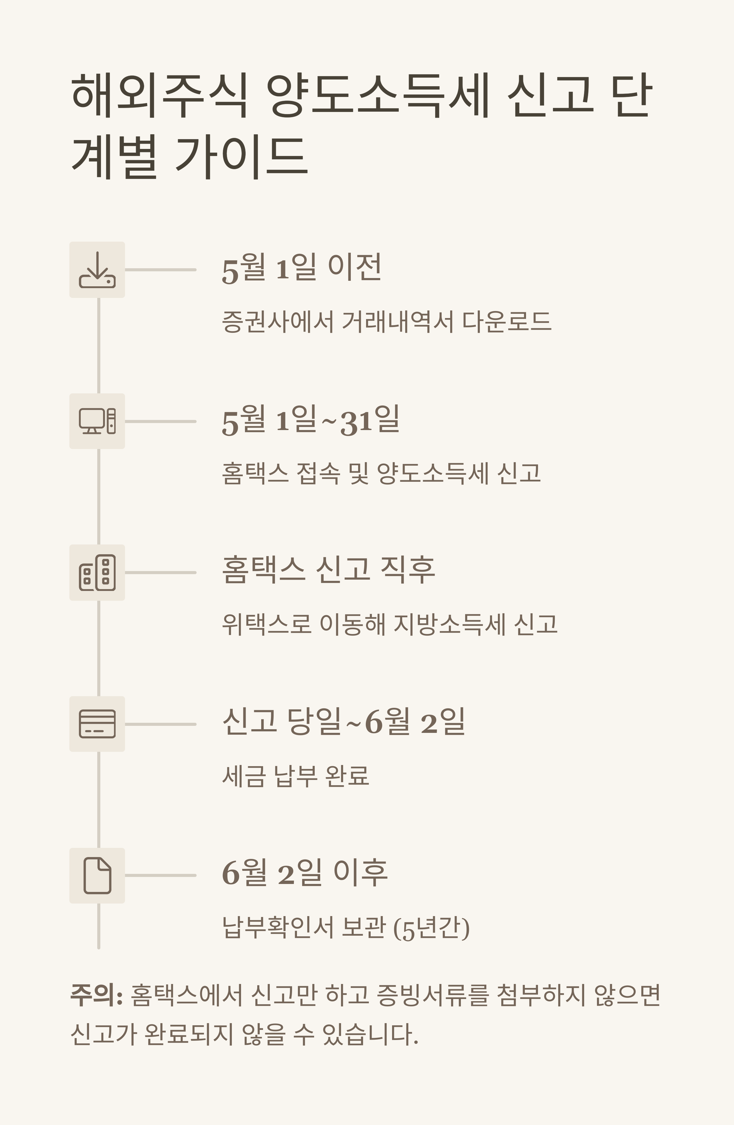 해외주식 투자로 수익을 올리셨다면, 양도소득세 신고는 반드시 해야 할 의무입니다. 2025년 5월 신고를 위해 지금부터 거래내역을 정리하고, 이 가이드를 참고해 차근차근 준비하세요.