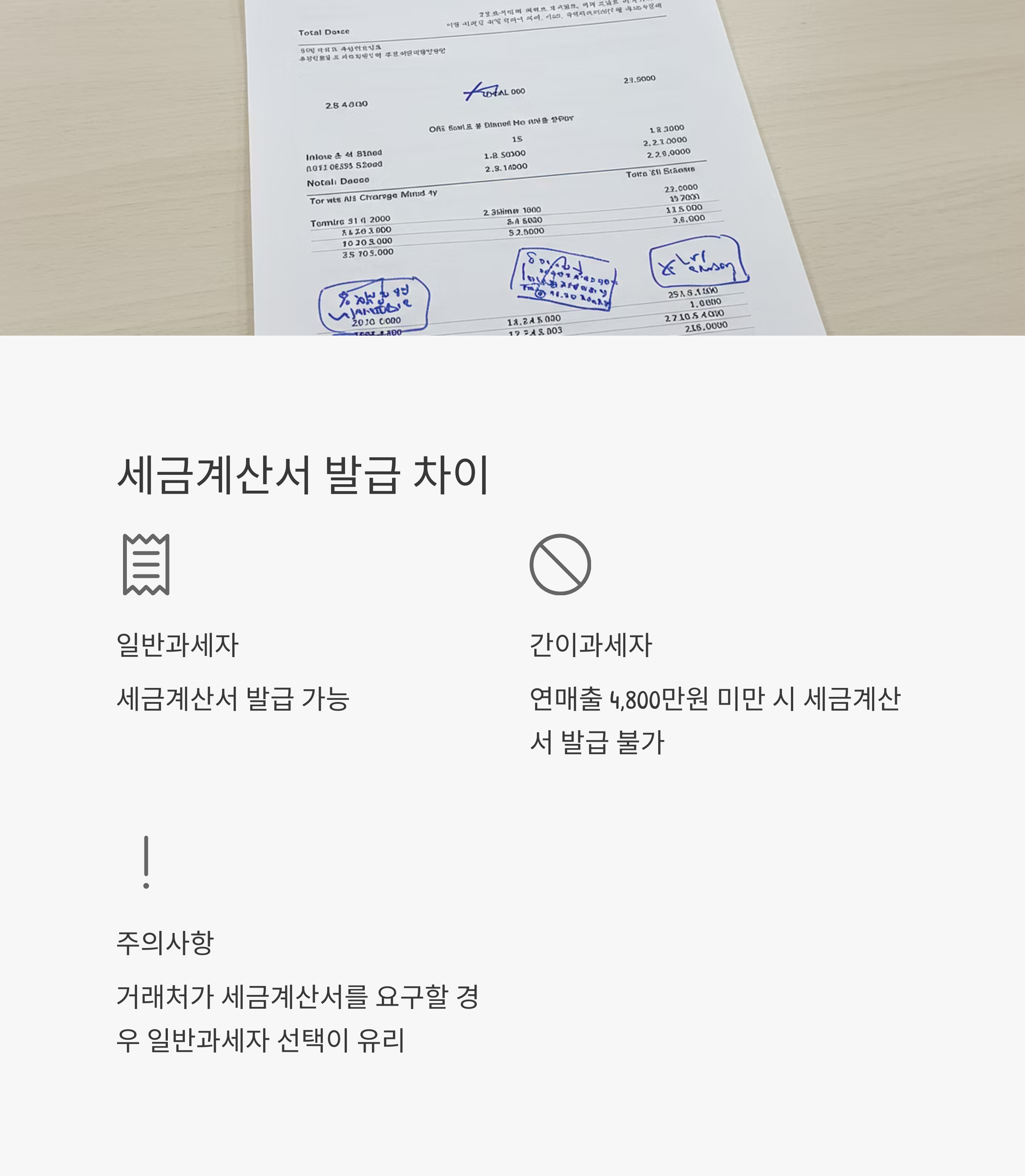 | 세금계산서 발급 | 가능 | 연매출 4,800만원 미만 시 불가 |