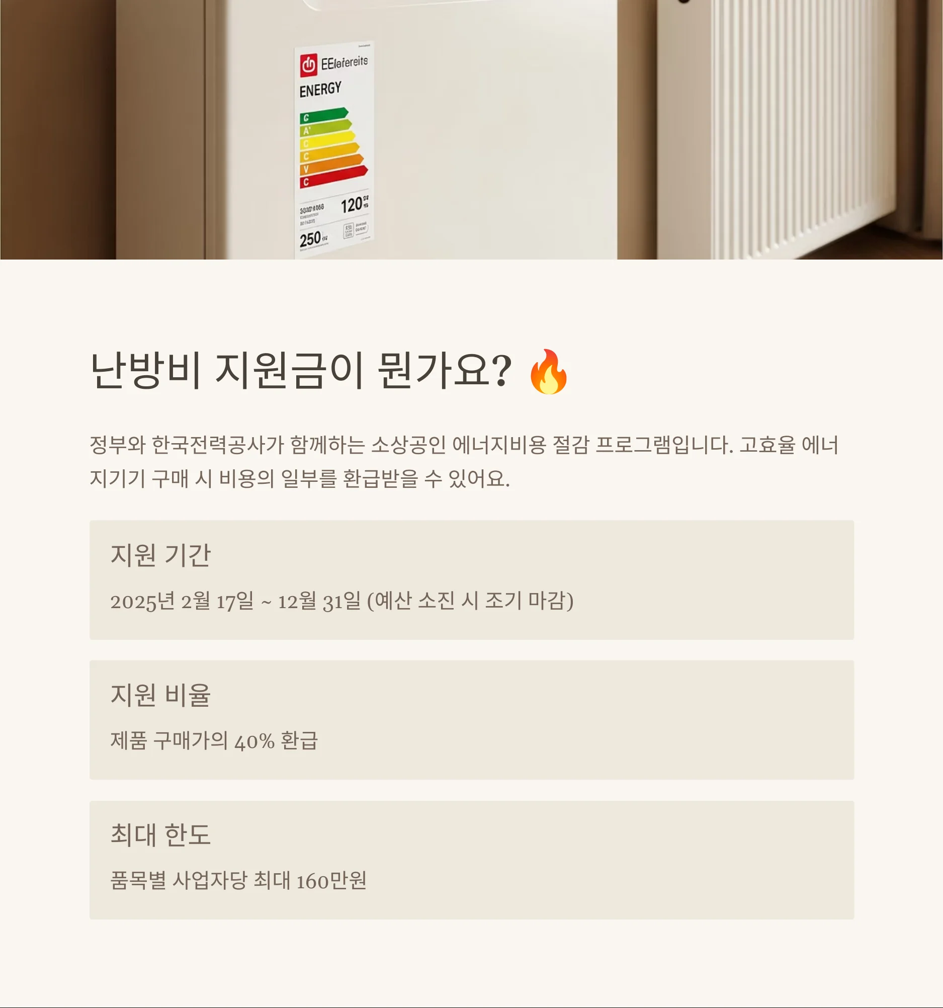 | 겨울 난방비 걱정 NO! 난방비지원금 50만원 혜택 안내 (0) | 2025.11.26 |