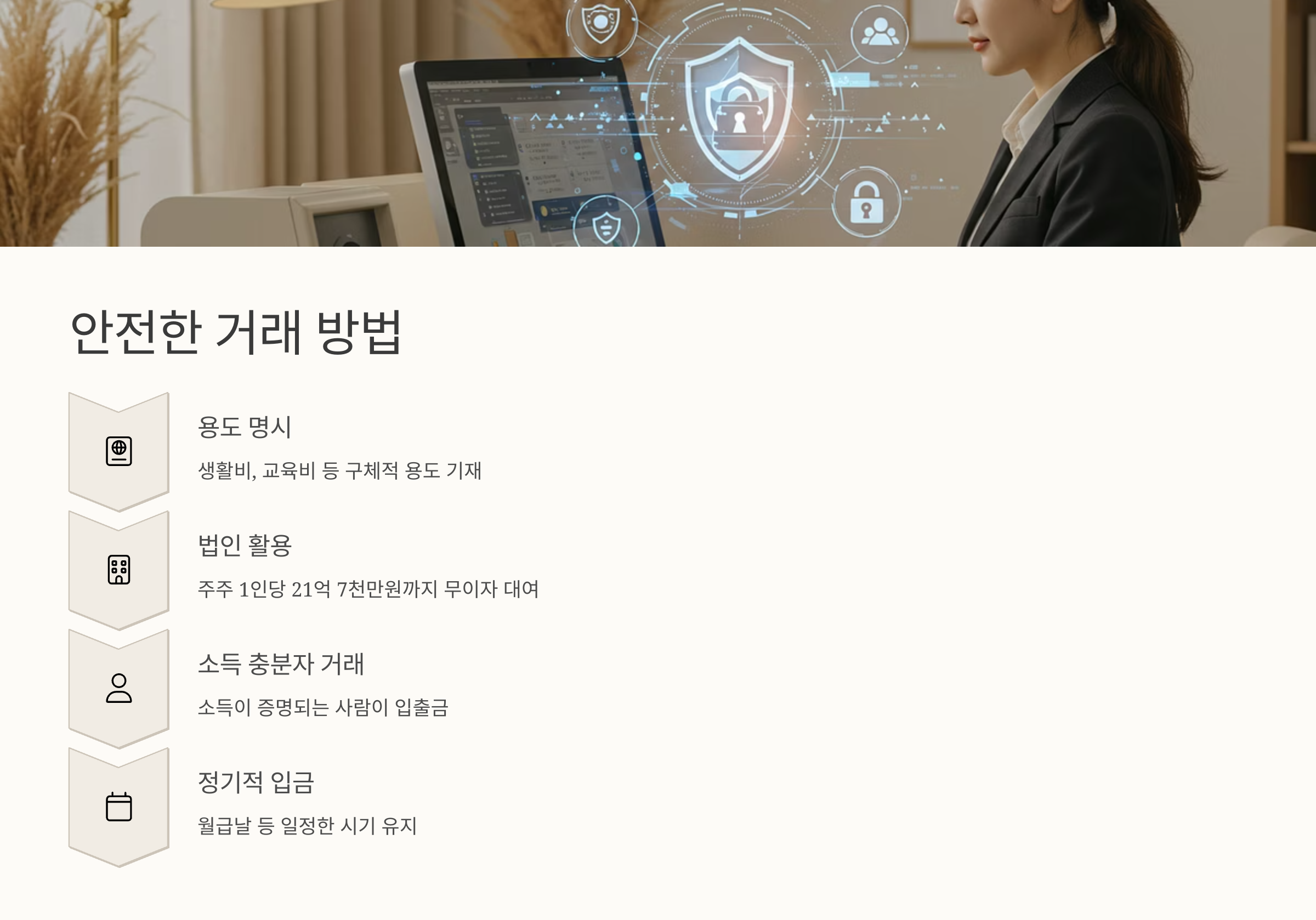 가장 중요한 것은 투명하고 합리적인 거래를 유지하는 것입니다. 본인의 소득 범위 내에서 정당한 용도로 자금을 사용한다면 AI 시스템도 문제삼지 않을 것입니다.