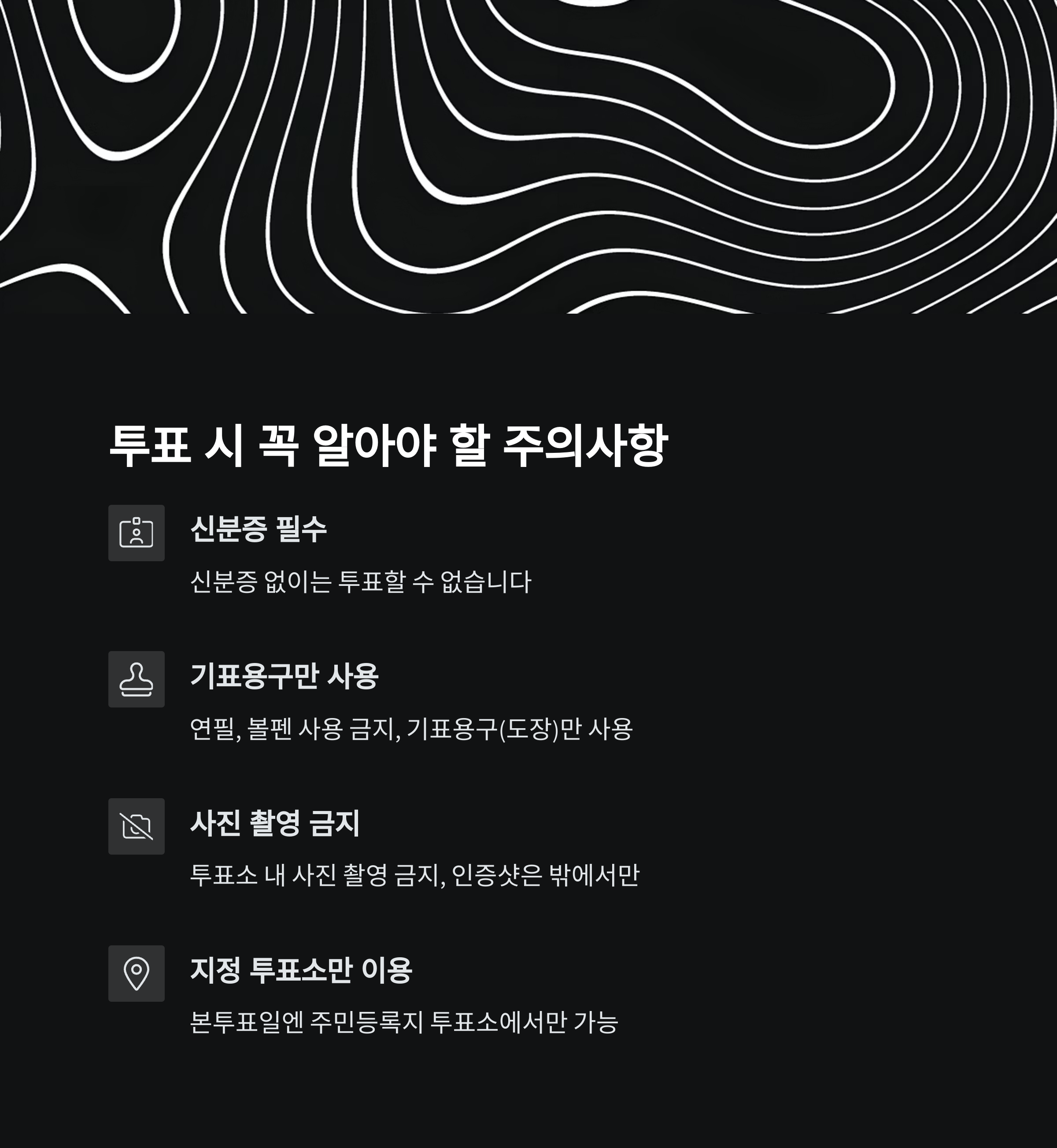 - 신분증 필수: 신분증을 챙기지 않으면 투표할 수 없습니다.