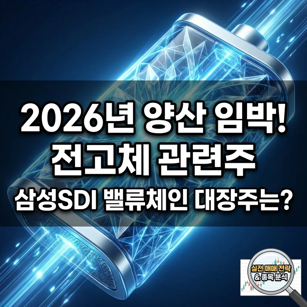 아직도 전고체 배터리를 먼 미래의 이야기로만 생각하시나요? 실체 없는 테마주에 속아 손실을 보는 투자자가 많습니다. 이 글에서는 2026년 양산 국면에 진입한 삼성SDI 공급망 핵심 기업과 조정 시 매수 타이밍 등 수익으로 직결되는 실전 옥석 가리기 비법을 공개합니다.