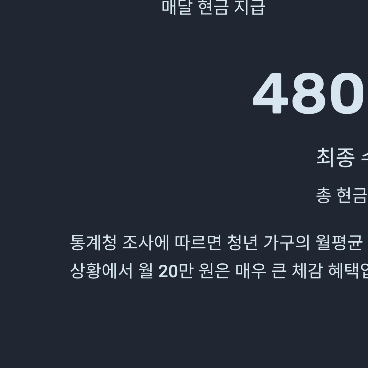 - 최종 수혜 금액: 480만 원 (현금 지급)