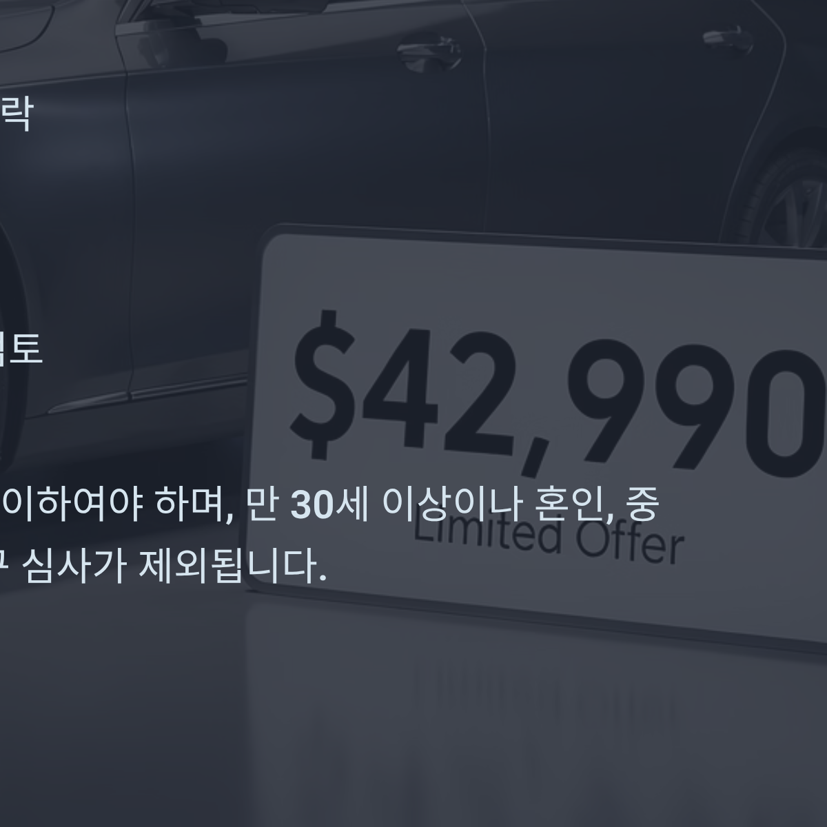 * 차량 가액: 본인 명의 차량이 있다면 시가표준액 2,500만 원(Standard Market Value)을 넘지 않아야 합니다. 최근 중고차 가격 상승으로 인해 탈락하는 경우가 많으니 미리 차량 가액을 조회해 보시기 바랍니다.