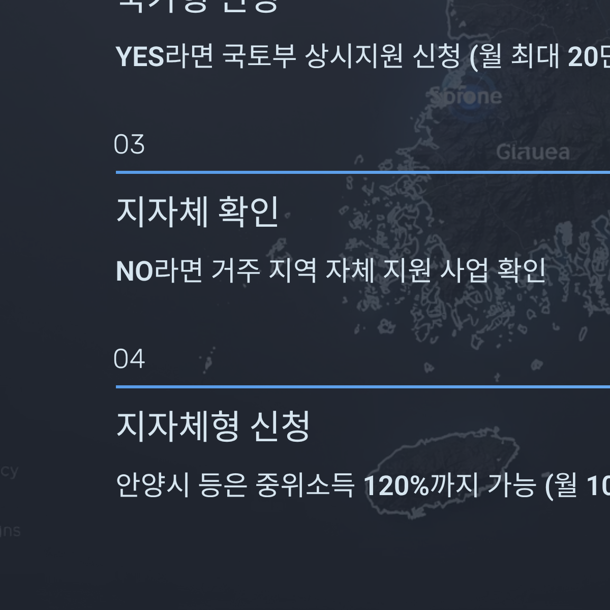 - YES → 국가형(국토부) 상시지원 신청 (월 최대 20만 원)