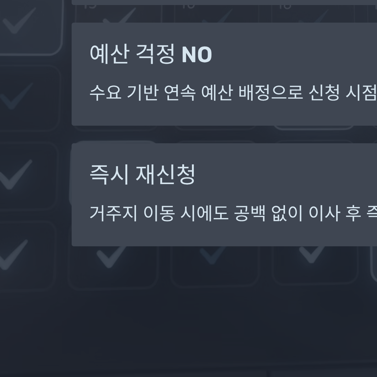 | 예산 운용 | 한정 예산, 조기 마감 우려 | 수요 기반 연속 예산 배정 | 신청 시점에 따른 불이익 소멸 |