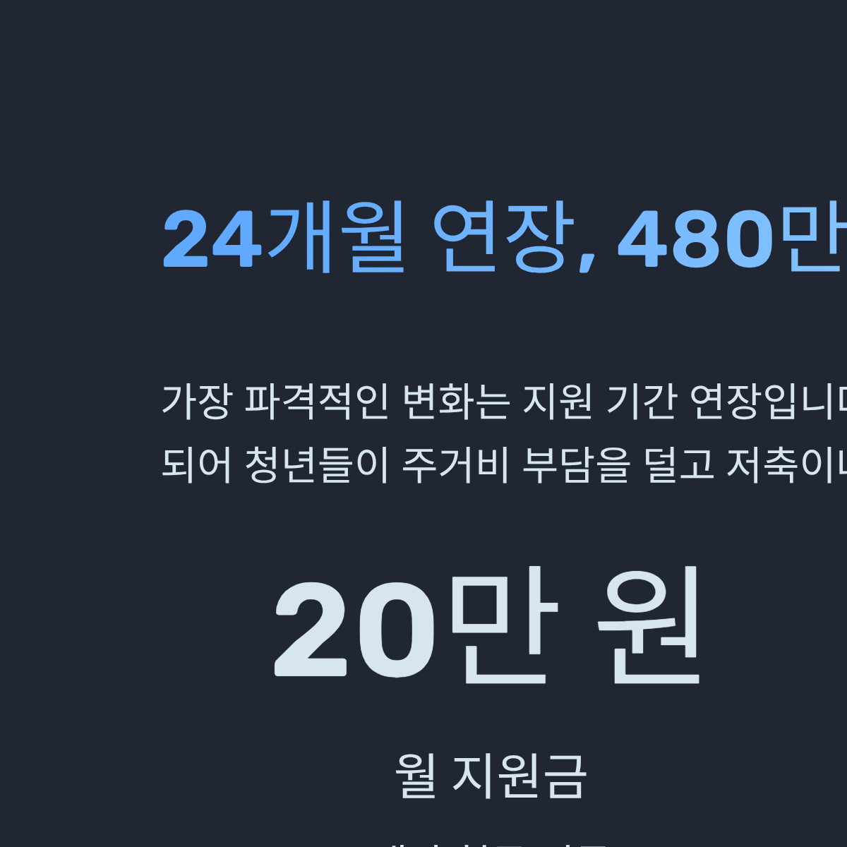 가장 파격적인 변화는 지원 기간의 연장입니다. 기존 12개월(단년도) 지원에서 최대 24개월(2년)로 확대되었습니다. 이는 청년들이 주거비 부담을 덜고 저축이나 자기계발에 집중할 수 있는 실질적인 시간을 벌어주겠다는 의도입니다. 통계청의 2025년 주거 실태 조사에 따르면, 청년 가구의 월평균 소득 대비 임대료 비율(RIR)이 20%를 상회하는 상황에서 월 20만 원은 매우 큰 체감 혜택입니다.