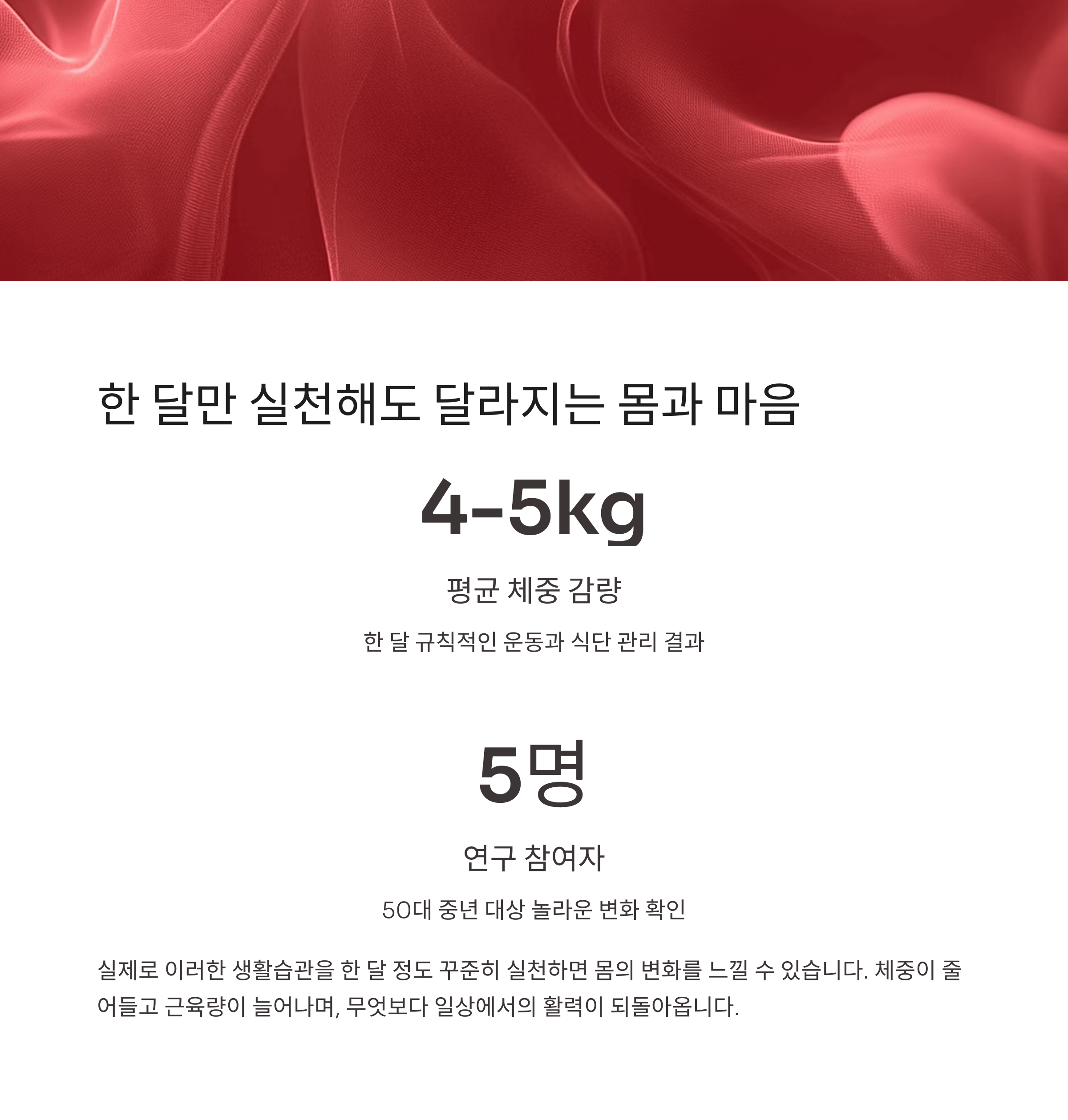 50대 중년 5명을 대상으로 한 연구에서도 한 달 동안 규칙적인 운동과 식단 관리를 통해 평균 4-5kg의 체중 감량과 근골격량 증가라는 놀라운 결과를 얻었습니다.