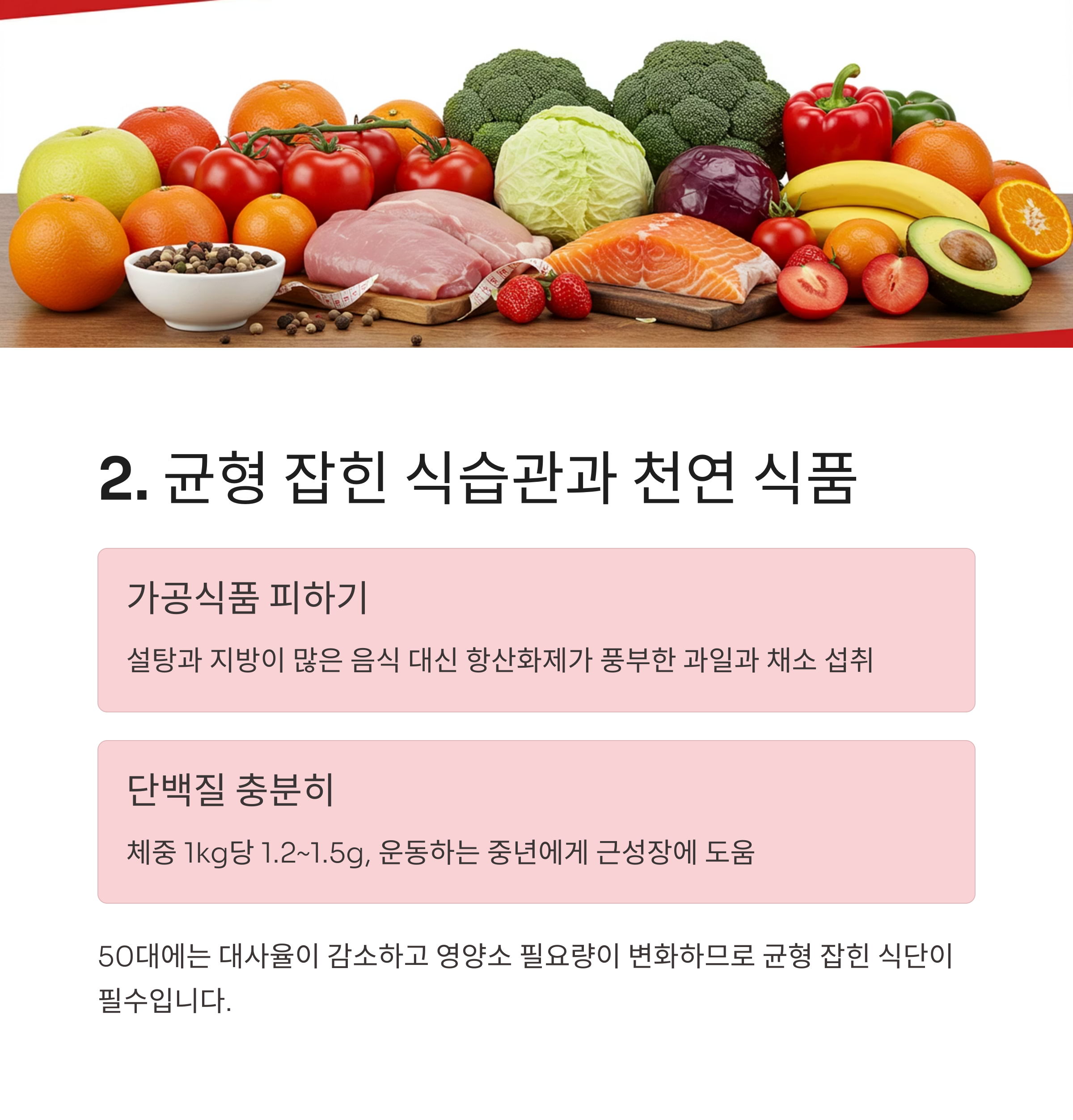 2. 균형 잡힌 식습관과 천연 식품 섭취