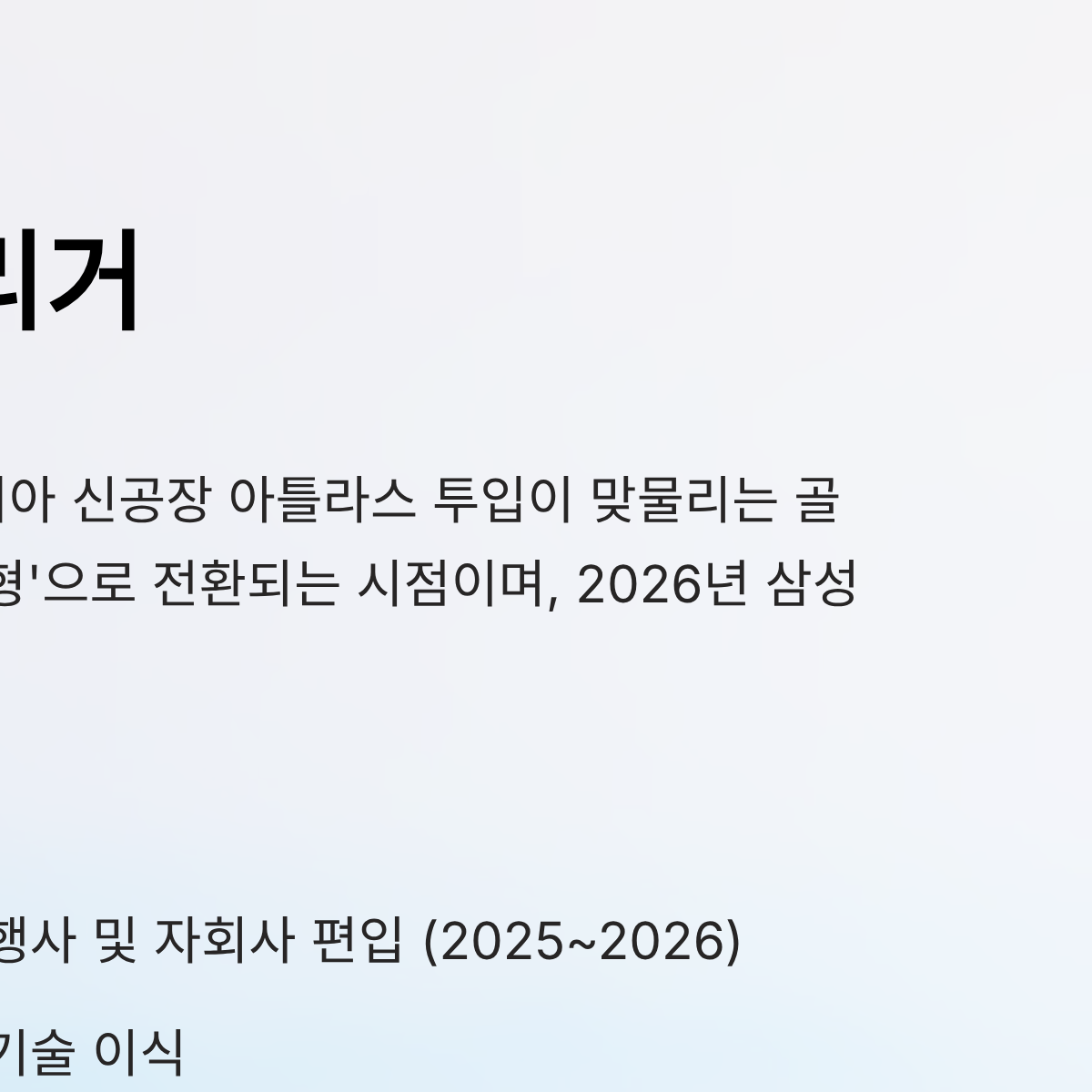 삼성의 인수합병부터 현대차 아틀라스 투입까지 2026 투자 트리거