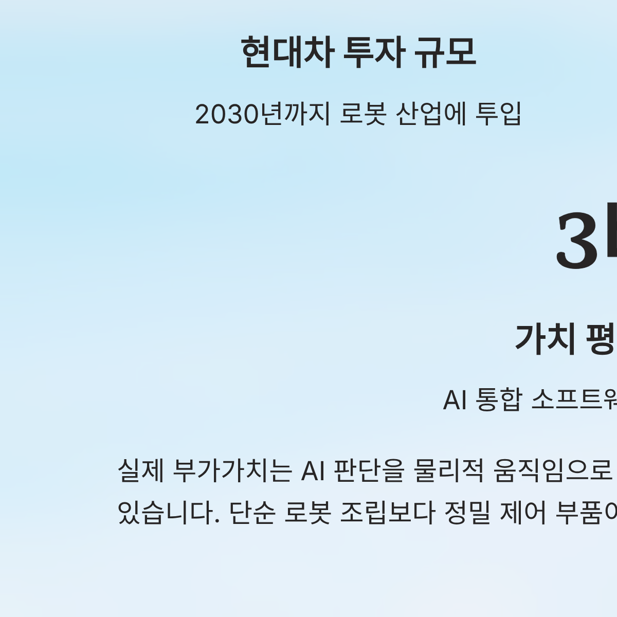 * 핵심 지표: 로봇 하드웨어보다 AI 통합 소프트웨어의 가치가 3배 이상 높게 평가됨