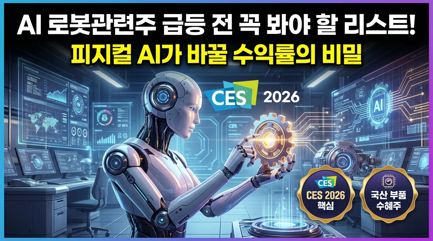 막연한 기대감만으로 로봇주에 투자하면 큰 손실을 보기 쉽습니다. 대다수 정보는 단순 종목 나열에 그쳐 실제 수익으로 연결되지 않기 때문입니다. 이 글은 CES 2026 피지컬 AI 트렌드와 국산 부품 자립화 수혜주를 데이터로 분석합니다. 실제 매출로 입증된 대장주 리스트를 통해 단순 테마를 넘어 실적 장세로 진입하는 로봇주 투자 필승 전략을 제시합니다.