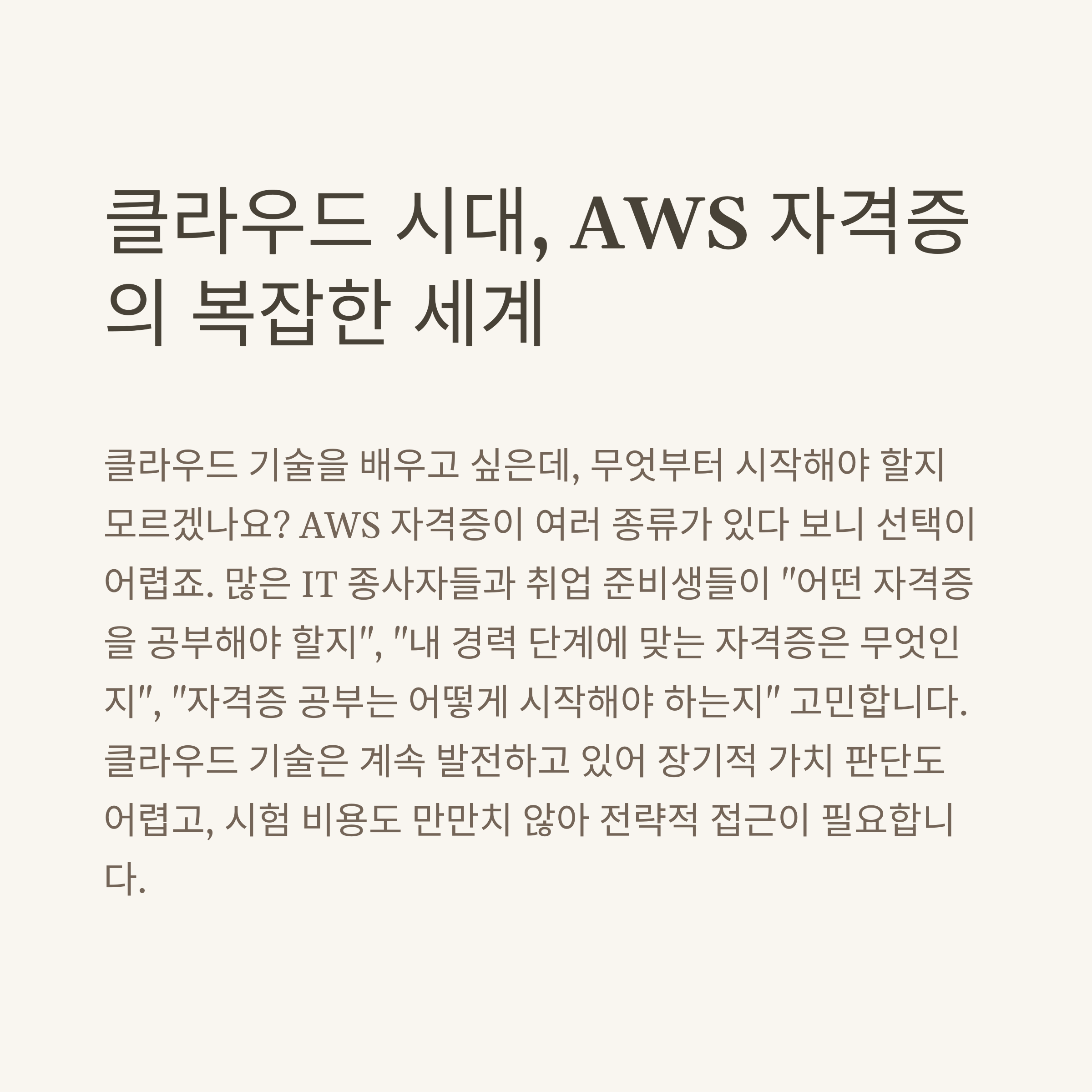• "AWS 자격증이 많아서 어떤 것을 공부해야 할지 모르겠어요."