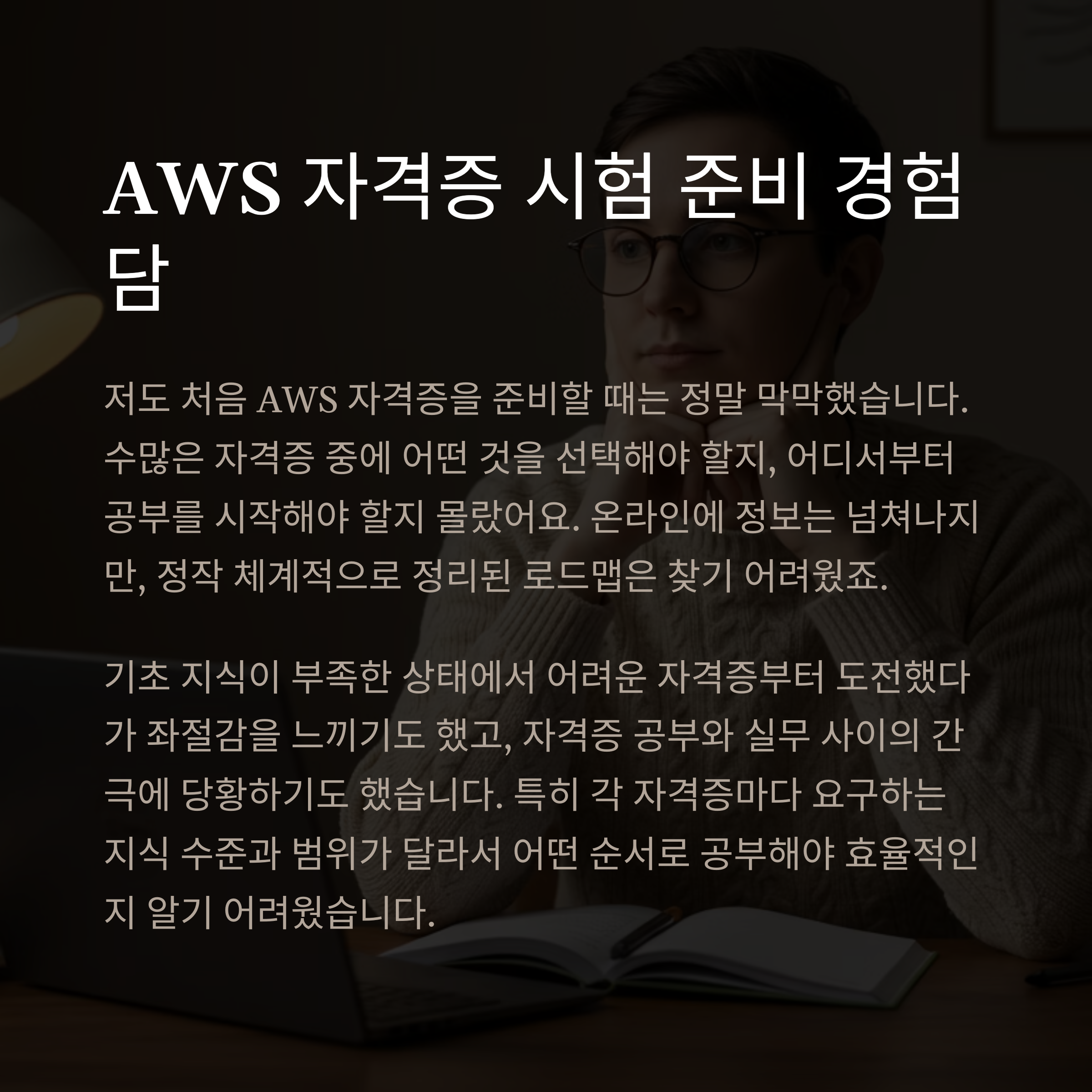 저도 처음 AWS 자격증을 준비할 때는 정말 막막했습니다. 수많은 자격증 중에 어떤 것을 선택해야 할지, 어디서부터 공부를 시작해야 할지 몰랐어요. 온라인에 정보는 넘쳐나지만, 정작 체계적으로 정리된 로드맵은 찾기 어려웠죠.