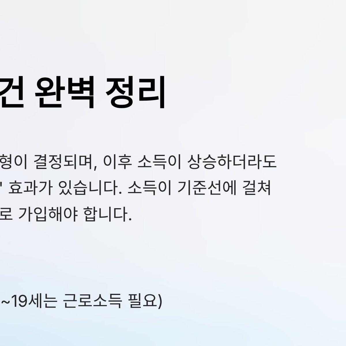 - 리스트 활용 인사이트: 위 항목 중 하나라도 해당하지 않으면 일반형으로 가입되지만, 향후 소득이 낮아지면 서민형으로 전환이 가능합니다.