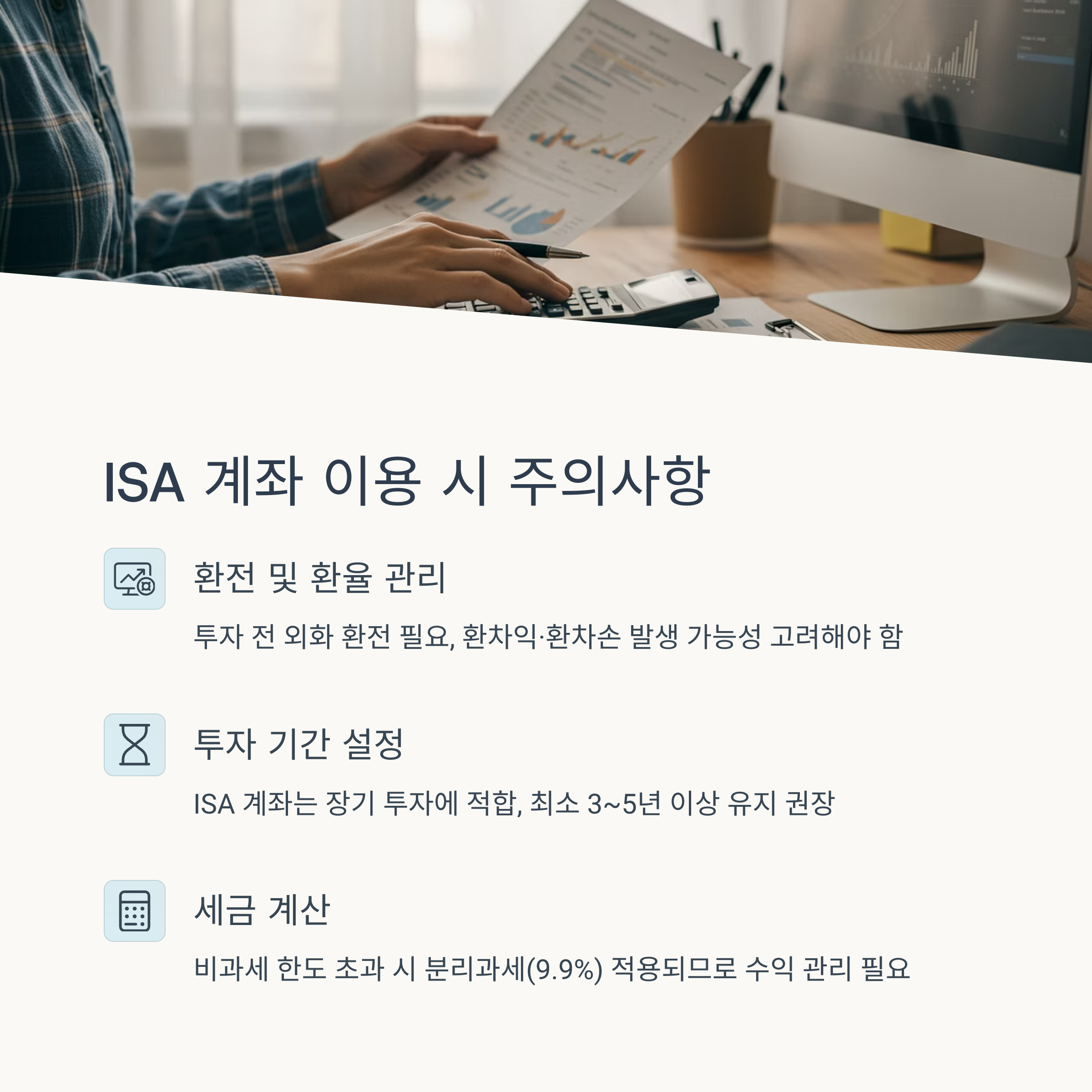 • 투자 기간 설정: ISA 계좌는 장기 투자에 적합, 최소 3~5년 이상 유지 권장