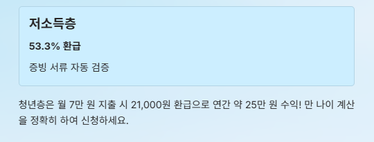 | 저소득 | 기초생활수급자 및 차상위계층 | 53.3% | 증빙 서류 자동 검증 시스템 |