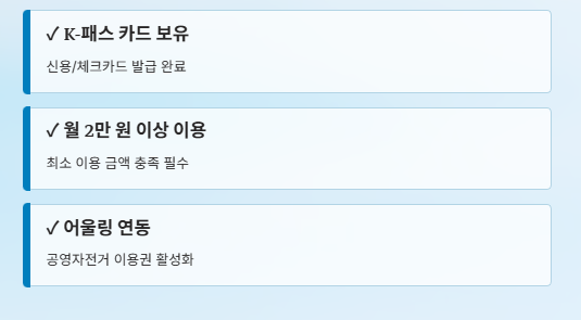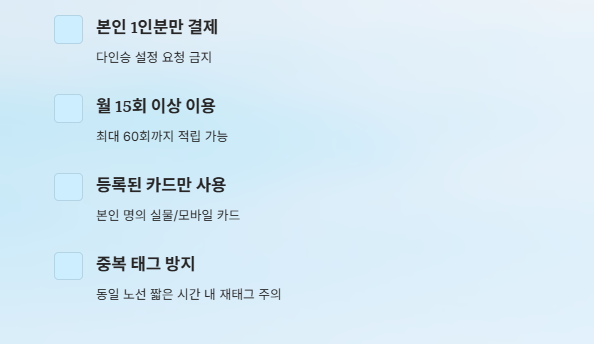 본인이 K-패스 혜택을 온전히 받기 위한 자격 요건을 아래 체크리스트로 확인해 보세요.