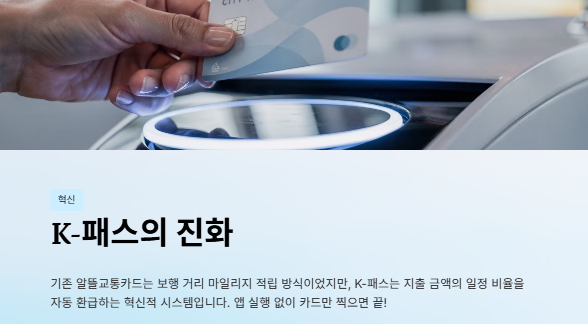 * K-패스는 전국 어디서나 사용할 수 있다는 강력한 범용성(Versatility)을 가집니다. 출장이 잦거나 여행을 즐기는 분들에게는 대체 불가능한 선택지입니다.