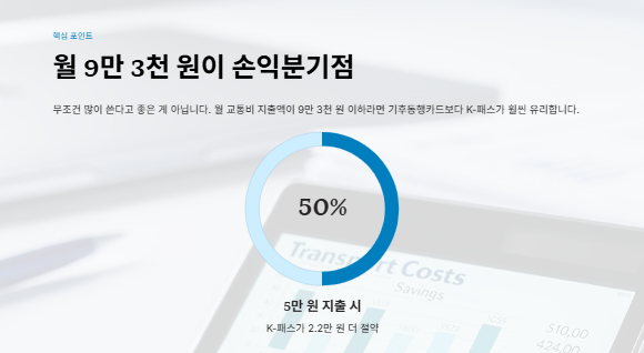 | 50,000원 | 10,000원 | 40,000원 | K-패스 압승 (기후동행카드보다 2.2만 원 절약) |